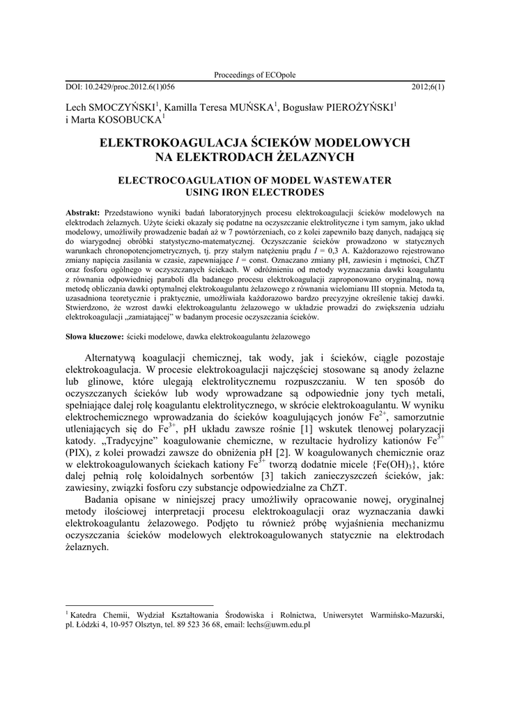 elektrokoagulantu żelazowego. Podjęto tu również próbę wyjaśnienia mechanizmu