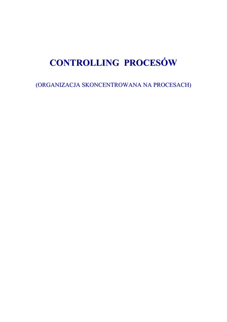 CONTROLLING PROCESÓW (ORGANIZACJA SKONCENTROWANA NA PROCESACH) Controlling procesów (organizacja skoncentrowana na procesach) 1. Pojęcie procesu. 2. Fazy przejścia od organizacji hierarchicznej do organizacji skoncentrowanej na procesach. 3. Rodzaje pracy w organizacji. 4. Ciągły cykl ulepszania procesu. 5. Sfery działalności właściciela procesu. 6. Zasady funkcjonowania organizacji gospodarczej skoncentrowanej na procesach. 7. Opis zadań dla trenera w organizacji skoncentrowanej na procesach. 8. Wartości wnoszone przez lidera w organizacji skoncentrowanej na procesach. 9. Sposoby kształtowania przez organizację strategii opartych na procesach. 10. Koło napędowe biznesu (system gospodarczy organizacji). 11. Koło napędowe zmiany. 12. Charakter wykonawców procesu. 2 Proces Kompletny zbiór zadań/czynności, które razem tworzą wartość dla klienta. Procesy realizowane są przez pracowników różnych działów przedsiębiorstwa. Każda organizacja, która chce funkcjonować w XXI wieku musi skoncentrować swoje poczynania na procesach. 3 Organizacja procesowa I właśnie organizacja procesowa zaleca całościowe myślenie o procesach jako powiązanych ze sobą czynnościach. Każda organizacja (przedsiębiorstwo) jest zbiorem wzajemnie przeplatających się procesów. Ich identyfikacja pozwala na lepsze zrozumienie tworzenia wartości, a ich usprawnienie i stałe doskonalenie zwiększa efektywność funkcjonowania organizacji (przedsiębiorstwa) i stopień zadowolenia klientów wewnętrznych i zewnętrznych. Stanisław Nowosielski 4 Niszczenie energii przedsiębiorstwa 1. Kupując cokolwiek poprzez swe biuro zaopatrzenia, na przykład papeterię wartą mniej niż 10 dolarów, Chrysler ponosił koszty wewnętrzne 300 dolarów – przeglądy, podpisy i zatwierdzenia. 2. Pepsi odkryła, że 44 % jej faktur wysyłanych detalistom zawierało błędy, co powodowało nieustanne sprzeczki z klientami i ogromne koszty uzgadniania. 3. Aetna Life & Casualty zwykle wymagała 28 dni, aby załatwić zgłoszenie ubezpieczenia właściciela domu, z czego tylko 26 minut zabierała prawdziwa praca produktywna. 4. Dla Texas Instruments’ Semiconductor Group trzeba było 180 dni na realizację zamówienia na układ scalony, podczas gdy ich kluczowy konkurent mógł to zrobić w ciągu 30 dni. 5 Fazy przejścia do organizacji skoncentrowanej na procesach 1. Wyodrębnienie i nazwanie procesów. 2. Uświadomienie każdemu znaczenia dla organizacji. pracownikowi procesów i ich 3. Ustalenie mierników liczbowych do oceny procesów. 4. Aktywne zarządzanie procesami. Słowa kluczowe procesu: „klient”, „rezultat dla klienta”, „zespół”, „wspólnie”. 6 Rodzaje pracy w organizacji * Praca dodająca wartość dla klienta, czyli taka, za którą klient chce płacić. Klient zewnętrzny (koszty) * Praca, która nie tworzy bezpośrednio wartości dla klienta, ale jest konieczna do wykonywania pracy dodającej wartość, klient płaci za nią niejako przy okazji Klient wewnętrzny (koszty) * Praca jałowa, która nie dodaje wartości, ani jej nie umożliwia, klient nie chce za nią płacić Brak klienta (marnotrawstwo) * Praca szkodliwa, która niszczy wartość dla klienta. Brak klienta (marnotrawstwo) 7 Klasyfikacja procesów w przedsiębiorstwie 1. Podstawowe - Generujące wartość dla klientów zewnętrznych 2. Pomocnicze - Generujące wartość dla klientów wewnętrznych, tym samym wspomagające generowanie wartości dla klientów zewnętrznych 3. Zarządzania procesami - Regulowanie procesów podstawowych i pomocniczych poprzez opracowanie planu strategicznego 8 Hierarchia / Procesy Organizacja hierarchiczna Organizacja skoncentrowana na procesach Zadania Proste Złożone Procesy Złożone Proste Punkt ciężkości Na zadaniach Na celu 9 Procesy podstawowe ………………………………. (praca dodająca wartość dla klienta) 1. ............................................................................................................................................................ .............................................................................................................................................................. 2. .............................................................................................................................................................. .............................................................................................................................................................. 3. .............................................................................................................................................................. .............................................................................................................................................................. 4. .............................................................................................................................................................. .............................................................................................................................................................. 5. .............................................................................................................................................................. .............................................................................................................................................................. 6. .............................................................................................................................................................. .............................................................................................................................................................. 7. ...........................................................................................................................................................