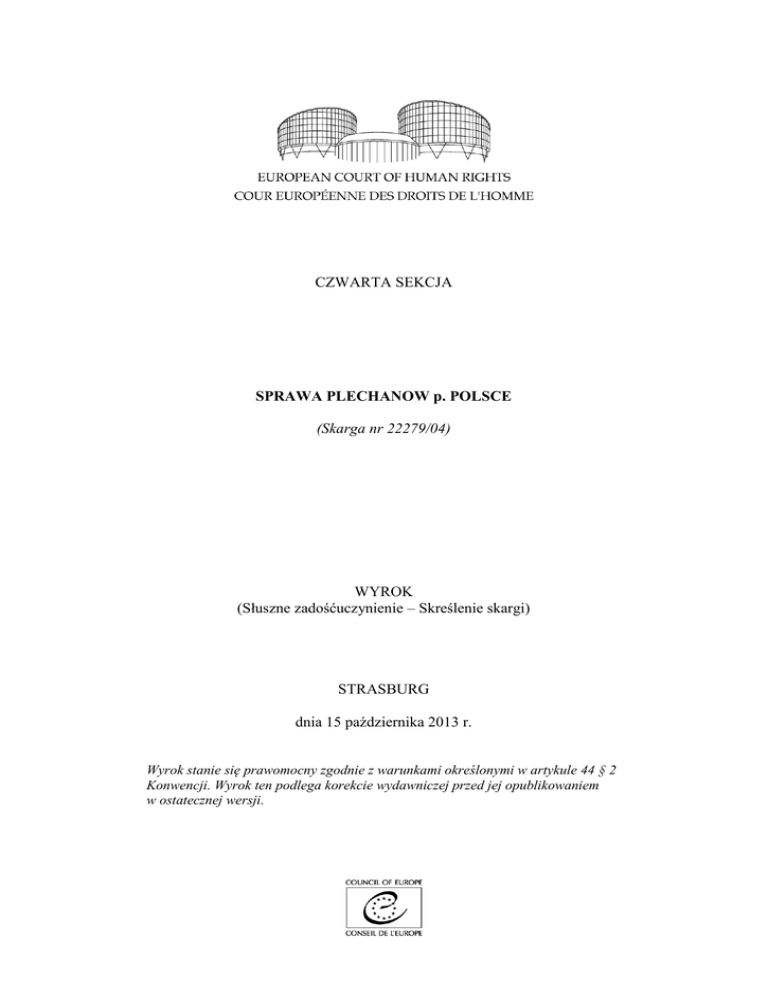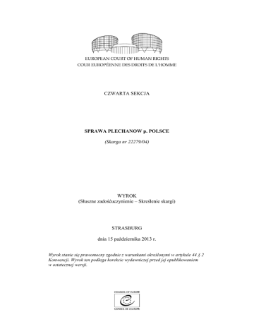 CZWARTA SEKCJA SPRAWA PLECHANOW p. POLSCE (Skarga nr