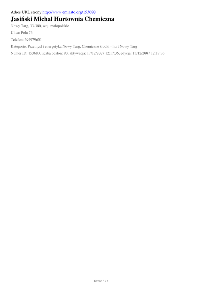 Jasinski Michal Hurtownia Chemiczna, Nowy Targ