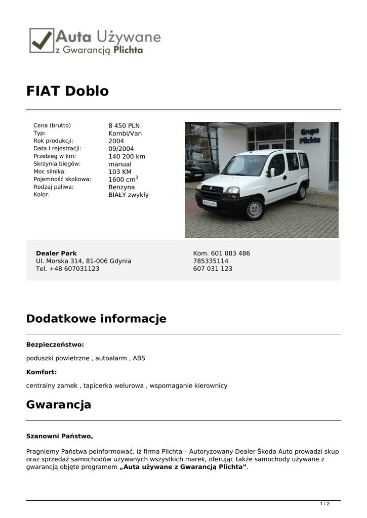 FIAT Doblo - Auta używane z gwarancją Plichta