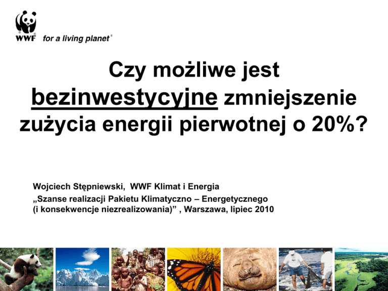 Czy możliwe jest bezinwestycyjne zmniejszenie zużycia energii pierwotnej o 20%? Wojciech Stępniewski, WWF Klimat i Energia „Szanse realizacji Pakietu Klimatyczno – Energetycznego (i konsekwencje niezrealizowania)” , Warszawa, lipiec 2010 Jak ograniczać emisję CO2 do atmosfery • Efektywność energetyczna – przemysł (nowe technologie), transport (zbiorowy – niedoceniana kolej, lotnictwo, sam. hybrydowe/elektryczne); gospodarstwa domowe (termodernizacja; dobra ochrona cieplna, etykiety energetyczne, budynki pasywne), • Wykorzystanie źródeł energii odnawialnej • Konwersja na gaz ziemny i kogeneracja • Wykorzystanie mechanizmów elastycznych CDM, JI • W przyszłości wykorzystanie wodoru w ogniwach paliwowych, CCS, zgazowywanie węgla, sztuczna fotosynteza, synergia węglowo-jądrowa Scenariusz efektywnościowy struktury technologii generacji energii (zał EUA = 39Euro) za FEWE XII2009 L p. Opcja technologiczna Produkcja energii elektrycznej TWh/r Emisja CO2 mln tCO2/r 1. Istniejące elektrownie węglowe, z częściową modernizacją 92,3 85,1 2. Nowe elektrownie węglowe 5000 MW 38,0 30,8 3. Istniejące i nowe elektrownie gazowe 6,6 2,6 4. Energia ze źródeł odnawialnych: wiatr + biomasa 27,6 - 5. Poprawa efektywności energetycznej – zaoszczędzona energia Razem 40,0 - 204,5 118,5 Przesył energii i stand-by • Straty transmisyjne przesyłu elektryczności rzędu 11% • „Inteligentne” sieci i mierniki • Redukcja systemów stand-by (sensoryka), przechodzenie do stanów rezerwy zimnej przy systemach ogrzewania budynków • Idea Supergrid Potencjał zmniejszenia zużycia energii w przemyśle • 20-30% całkowitego zużycia energii • Sytuacja zróżnicowana co do technologii (n.p. przemysł cementowy ma bardzo dobre wskaźniki efektywności) • Oświetlenie; ogrzewanie i c.w.u., lokalne kotłownie/ciepłownie systemowe; napędy elektryczne, sieci elektryczne i cieplne • Zmiana technologii Potencjał zmniejszenia zużycia energii w gospodarstwach domowych i SME 40% potencjału (raport WWF/FEWE) • Usługi chłodzenia; gotowania; zmywania • Oświetlenie (1/4 zużycia energii) • Termomodernizacja; automatyka regulacyjna; odzysk ciepła z wentylacji; modernizacja kotłów grzewczych i ogrzewaczy przepływowych; kolektory słoneczne; kotłownie osiedlowe Potencjał zmniejszenia zużycia energii w napędach elektrycznych • • • • • Napędy elektryczne 0,75 kW – 3000 kW Regulacja częstotliwościowa napędów VSD Pompy odśrodkowe 4kW – 130 kW Pompy obiegowe <3kW, z klasC i D na klasę A Łączny potencjał oszczędności 12 432 GWh/rok Potencjał zmniejszenia zużycia energii w nowobudowanych budynkach • Wymagania ochrony cieplnej zliberalizowane • Polska (i Czechy) mają najsłabszy współczynnik sezonowego zapotrzebowania na energię • Budownictwo pasywne praktycznie nie istnieje (kilka obiektów) • Katastrofa z certyfikatami energetycznymi • EPBD fatalnie wdrożona w Polsce Nowela dyrektywy EPBD Art.9 Do 31 grudnia 2020 wszystkie budynki „nearly zero energy” Państwa członkowskie zobowiązane do zaprezentowania planu dotyczącego wzrostu liczby budynków „prawie zeroenegetycznych” Jakiej jakości będzie transpozycja do prawa polskiego? Łączny potencjał wynikający z raportu FEWE wynosi 212 TWh rocznie • Efektywność cieplna budynków mieszkalnych i SME 67% • Sprawność wytwarzania energii 19% • Napędy elektryczne 5,8% • AGD 4,6 % Potencjał zmniejszenia zużycia paliw/energii i redukcji emisji w transporcie • Brak zachęt do kupna samochodów elektrycznych i hybrydowych, flex-fuel • Zachęty fiskalne do kupna aut SUV • Polscy producenci aut elektrycznych • Infrastruktura elektryczna w Warszawie • Buspasy dla taxi, nie dla elektrycznych/hybryd • Biodiesel dostępny, Bioetanol E-85 niedostępny Zmniejszenie zużycia paliw i energii, redukcja emisji w transporcie • Infrastruktura kolejowa 95% w złym stanie • Przejazdy aglomeracyjne w Warszawie, Poznaniu – więcej P&R, stan kolei żałosny, faworyzowanie transportu kołowego przez samorządy (np. Paryż 90% realizowanych przejazdów koleją to aglomeracja, Kopenhaga 6 linii kol. i 1 metra) • Warszawa – Tarchomin, Bemowo, Miasteczko Wilanów – transport szynowy 2017 - 2022 • Niskoinwestycyjne: buspasy, system sterowania ruchem, opłaty za wjazd do centrum (Kraków!), sieć ścieżek rowerowych , punktualność komunikacji • Komunikacja miejska zatłoczona, przestarzały tabor • Koszty są „ujemne”, co oznacza, że racjonalizacje powinny być bezinwestycyjne, zwracające się z oszczędności. Dlaczego tak się nie dzieje? • Widoczna jest słabość mechanizmów skierowanych do przedsiębiorstw (ustawa o EE, certyfikaty) i gospodarstw/wspólnot (systemy kredytowania energoszczędnych urządzeń zamiast dopłat do rachunków, 0zł w Funduszu Termomodernizacyjnym) • OZE - Zielone certyfikaty zbyt słabym bodźcem dla inwestorów