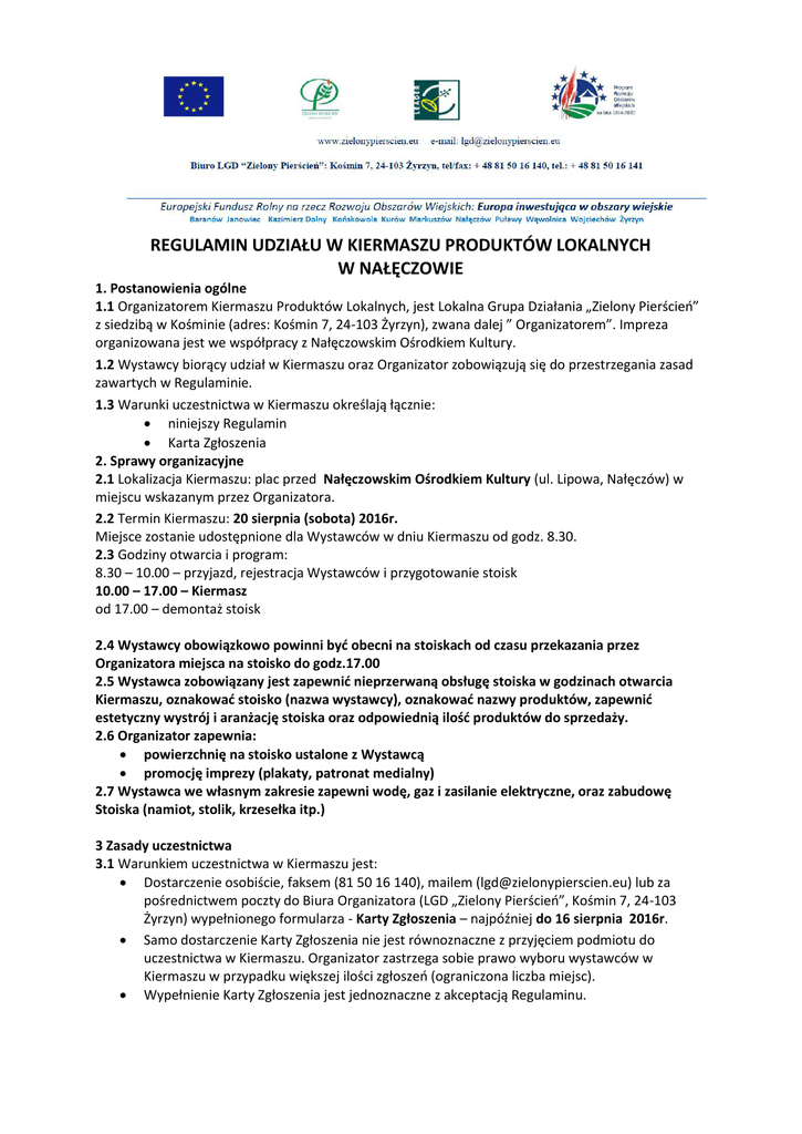 Regulamin Kiermaszu - LGD Zielony Pierścień