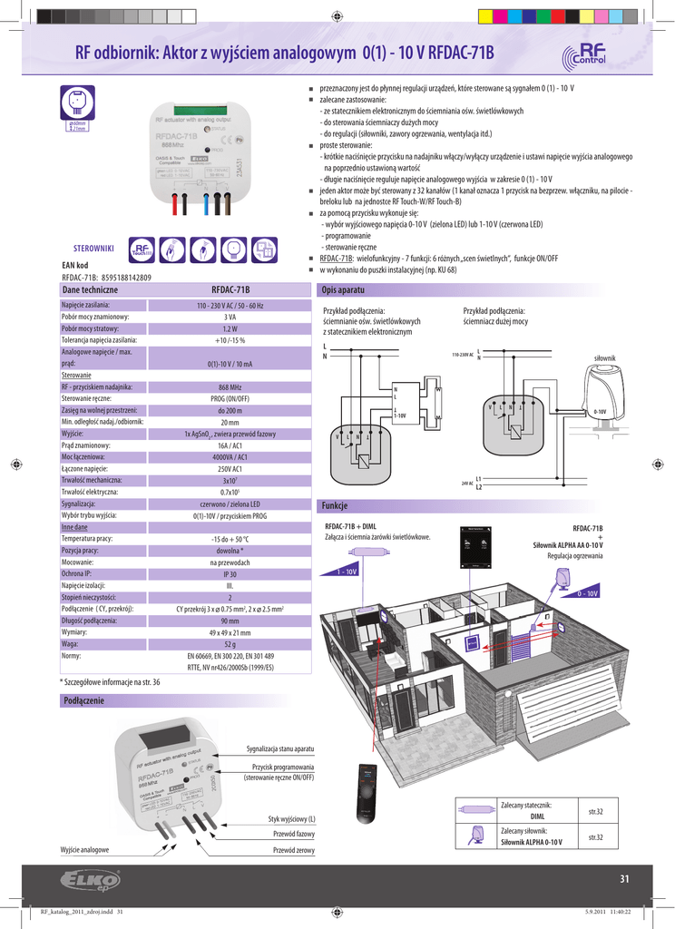 RF odbiornik:Aktor z wyjściemana logowym 0(1) - 10 V RFDAC-71B