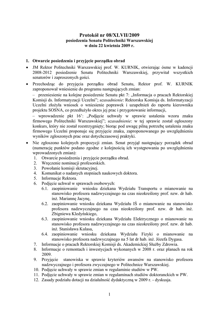 Protokół nr 08/XLVII/2009 - BIP PW