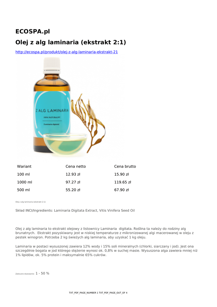 ECOSPA.pl Olej z alg laminaria (ekstrakt 2:1)