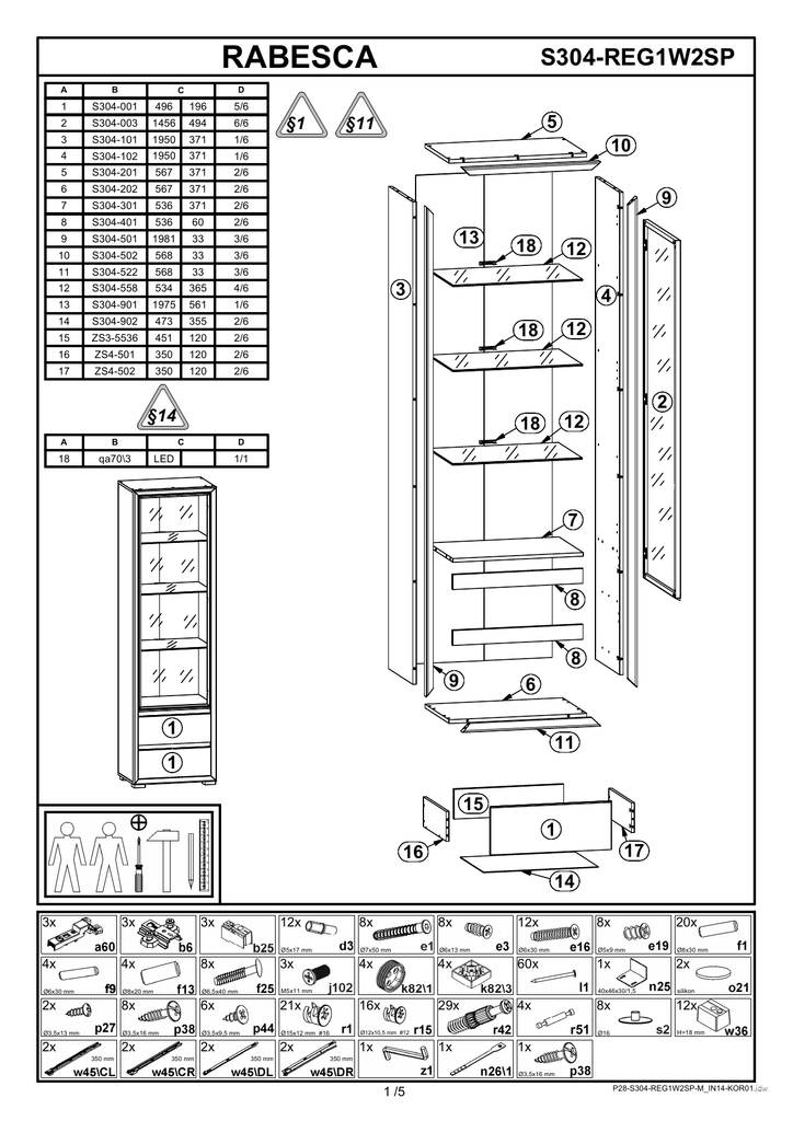RABESCA A B 1 S304-001 496 196 5/6 2 S304-003 1456 494 6/6 3 S304-101 1950 371 1/6 4 S304-102 1950 371 1/6 5 S304-201 567 371 2/6 6 S304-202 567 371 2/6 7 S304-301 536 371 2/6 8 S304-401 536 60 2/6 9 S304-501 1981 33 3/6 10 S304-502 568 33 3/6 11 S304-522 568 33 3/6 12 S304-558 534 365 4/6 13 S304-901 1975 561 1/6 14 S304-902 473 355 2/6 15 ZS3-5536 451 120 2/6 16 ZS4-501 350 120 2/6 17 ZS4-502 350 120 2/6 S304-REG1W2SP D C §1 5 §11 10 9 13 18 12 3 4 12 18 2 §14 A B 18 qa70\3 12 18 D C LED 1/1 7 8 8 9 6 1 11 1 15 1 17 16 14 3x 3x 3x 12x Ø5x17 mm Ø7x50 mm Ø6x13 mm Ø6x30 mm Ø5x9 mm Ø8x30 mm 4x 4x 8x 3x 4x 4x 60x 1x 2x 40x46x30/1,5 silikon 16x 29x 4x 8x 12x Ø16 H=18 mm 1x 1x Ø6x30 mm Ø8x20 mm Ø6,5x40 mm M5x11 mm 2x 8x 6x 21x 8x 8x Ø3,5x13 mm Ø3,5x16 mm Ø3,5x9,5 mm Ø15x12 mm #16 Ø12x10,5 mm #12 2x 2x 2x 2x 1x 350 mm 350 mm 350 mm 12x 8x r51 20x 350 mm Ø3,5x16 mm 1 /5 .idw P28-S304-REG1W2SP-M_IN14-KOR01.idw 1 f1 e16 w45\CL §2 w36 r42 f1 j102 d3 d3 d3 d3 3 j102 d3 d3 e16 b25 b6 4 j102 b25 b6 r42 w45\CR f1 b25 b6 l j102 ll 4 w36 4 b25 b6 b6 f1 II I e16 w45\CR w36 2 §6 3 r42 r1 f1 7 r1 4 f1 r1 f1 f1 r1 I 8 f1 II r42 8 f1 III 2 /5 .idw P28-S304-REG1W2SP-M_IN14-KOR01.idw e1 3 e1 5 n25 p27 3 7 4 p27 p27 6 5 e1 z1 e1 e1 n25 A=B A 4 B l1 5 l1 l1 13 l1 l1 4 3 /5 6 .idw P28-S304-REG1W2SP-M_IN14-KOR01.idw r15 r15 f13 5 r51 r42 r42 10 r42 9 r42 r42 r42 9 r15 II I r42 r15 11 r51 11 6 f13 r15 r15 r51 9 f13 10 r42 9 r1 r1 r42 r1 5 r42 r1 4 r1 9 r1 r42 r42 3 I 11 II r1 r42 r42 r1 III r1 6 r1 7 e3 k82\1 k82\3 e3 3 e3 k82\1 k82\1 k82\3 6 e3 k82\3 4 /5 .idw P28-S304-REG1W2SP-M_IN14-KOR01.idw f9 8 17 f9 f25 e19 w45\DR l 15 r42 16 f25 1 r15 17 r42 r15 w45\DL ll II I 15 e19 lll 15 16 I p38 14 III II r42 p38 e19 w45\DL 9 §11 §14 12 b25 p44 n25 o21 a60 18 12 d3 12 12 d3 p44 2 b25 12 n26\1 a60 §21 p38 12 §18 d3 b25 w36 w36 I II a60 p44 a60 a60 1 III e16 w36 w45\CR a60 o21 ll b6 w36 w36 e16 e16 w45\CL w45\CR b25 §10 a60 l 5 /5 .idw P28-S304-REG1W2SP-M_IN14-KOR01.idw