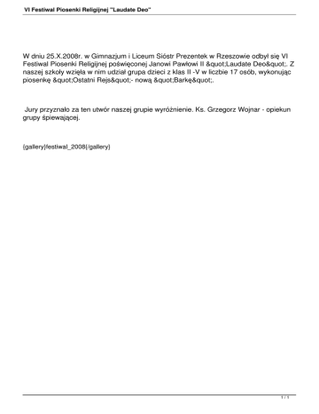 W dniu 25.X.2008r. w Gimnazjum i Liceum Sióstr Prezentek w Rzeszowie odbył się VI