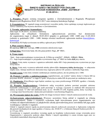 Instrukcja Żeglugi Święto Dzieci i Młodzierzy pod Żaglami Regaty o