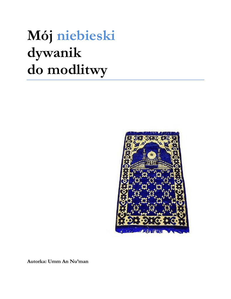 Mój niebieski dywanik do modlitwy Autorka: Umm An Nu’man Pierwsze wydanie: Rabi al-awal, 1429; Marzec 2008 Mój niebieski dywanik do modlitwy Wszelkie prawa zastrzeżone. Żadna część tej książki nie może zostać przedrukowana bez pisemnej zgody autroki. Każda część tej książki nie może zostać przetłumaczona na inny język, przetworzona bez uprzedniej zgody autorki. Kontakt do autorki: [email protected] Polska wersja: naukapoprzezzabawe.wordpress.com 2 To jest mój niebieski dywanik do modlitwy. 3 Modlitwę się modlitwę fadżr na moim niebieskim dywaniku. 4 Modlitwę się modlitwę ẓuhr na moim niebieskim dywaniku. 5 Modlitwę się modlitwę asr na moim niebieskim dywaniku. 6 Modlitwę się modlitwę magṟeb na moim niebieskim dywaniku. 7 Modlitwę się modlitwę isza’ na moim niebieskim dywaniku. 8 Ẓuhr Fadżr Asr Magṟeb Isza’ Uwielbiam modlić się pięć modlitw na swoim niebieskim dywaniku. 9 Ćwieczenia: O której godzinie rozpoczyna się modlitwa fadżr w twojej miejscowości? Pokaż godzinę fadżr na tym zegarze, insha allah. O której godzinie rozpoczyna się modlitwa zuhr w twojej miejscowości? Pokaż godzinę fażr na tym zegarze, insha allah. O której godzinie rozpoczyna się modlitwa asr w twojej miejscowości? Pokaż godzinę fażr na tym zegarze, insha allah. 10 O której godzinie rozpoczyna się modlitwa ẓuhr w twojej miejscowości? Pokaż godzinę ẓuhr na tym zegarze, insza allah. 11 O której godzinie rozpoczyna się modlitwa asr w twojej miejscowości? Pokaż godzinę asr na tym zegarze, insza allah. 12 O której godzinie rozpoczyna się modlitwa magṟeb w twojej miejscowości? Pokaż godzinę magṟeb na tym zegarze, insza allah. 13 O której godzinie rozpoczyna się modlitwa isza’ w twojej miejscowości? Pokaż godzinę isza’ na tym zegarze, insza allah. 14 Jakiego koloru jest twój dywanik do modlitwy? Proszę narysuj go poniżej, insza allah. 15 Jak myslisz, na którą modlitwę ta osoba musi się obudzić? Pokoruj rysunek, insza allah. 16 Co robi ta osoba? Dlaczego ona/on to robi? Pokokoruj ten rysunek, insza allah. 17 Co robie ten mężczyzna? Jak myślisz, dlaczego on to robi? Pokoloruj ten rysunek, insza allah. 18 Co przedstawia ten rysunek? Co muzułmanie tam robią? Pokoloruj ten rysunek, insza allah. 19 Do kogo ta dziewczynka składa dua? Do kogo wszyscy muzułmanie powinni się modlić? Pokoloruj ten rysunek, insza allah. 20