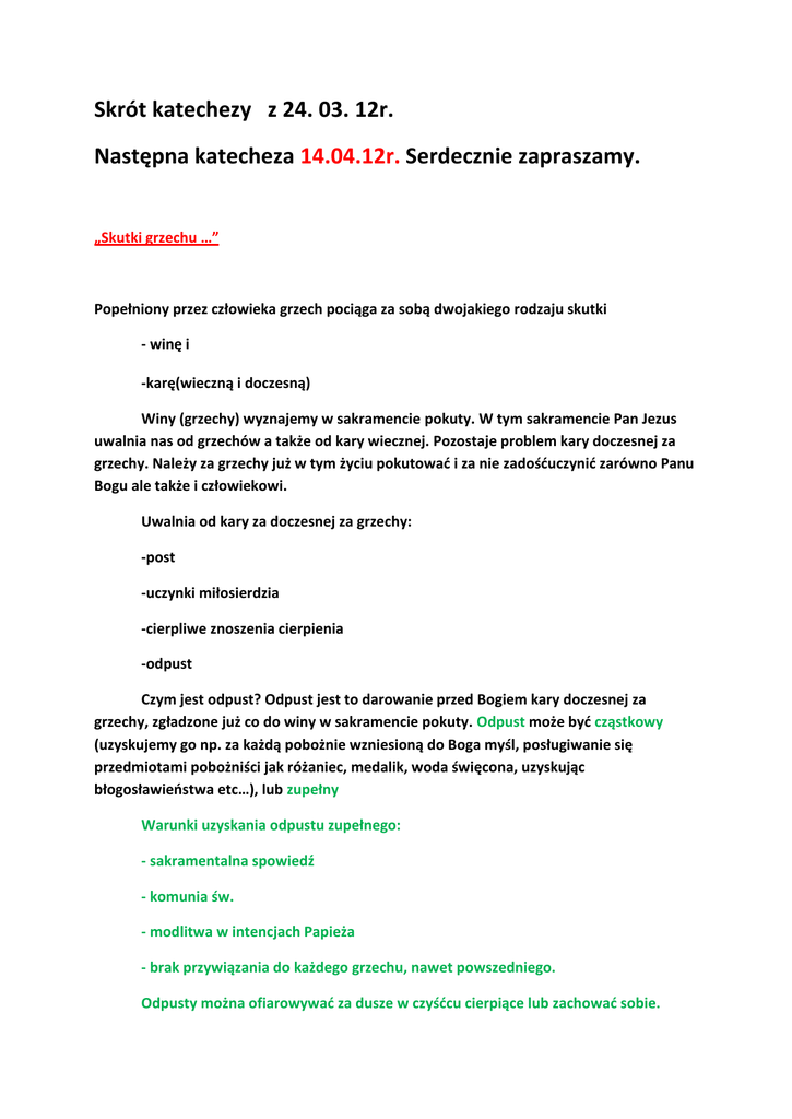 Skrót katechezy z 24. 03. 12r. Następna katecheza 14.04.12r