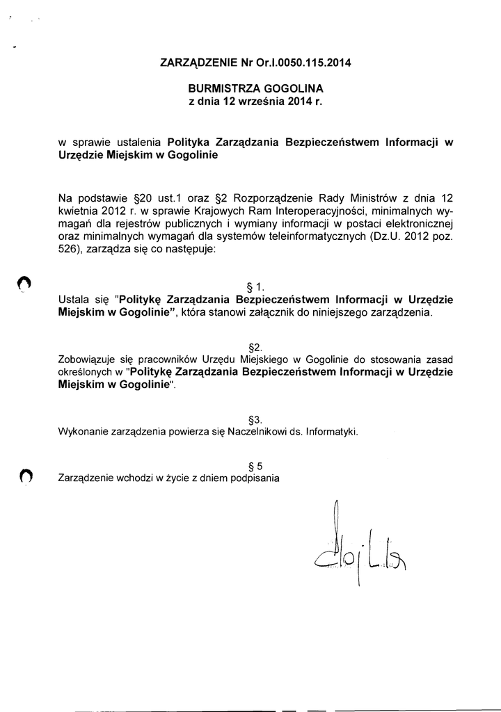 ZARZĄDZENIE Nr Or.I.0050.115.2014 BURMISTRZA GOGOLINA z