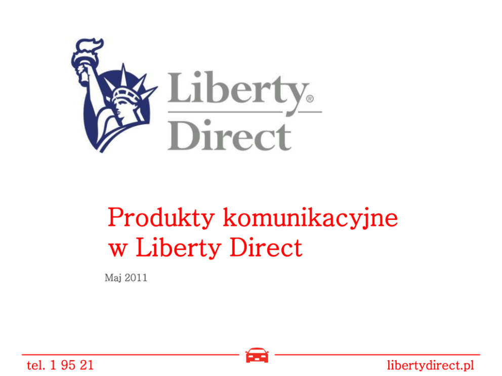 Produkty komunikacyjne w Liberty Direct Maj 2011 tel. 1 95 21 libertydirect.pl Ubezpieczenia dobrowolne Rodzaj ubezpieczeń dobrowolnych w Liberty Direct: Autocasco Assistance Ubezpieczenie NNW Ubezpieczenie Szyb Ubezpieczenia dobrowolne są zwierane na 12 miesięcy zawsze jako dodatek do ubezpieczenia OC. Dla wygody Klienta proponujemy sprzedaż pakietową. tel. 1 95 21 libertydirect.pl Zawieranie umów Umowa ubezpieczenia zawierana jest na okres 12 miesięcy, chyba że umówiono się inaczej Umowa ubezpieczeniowa może być zawarta wyłącznie przez lub na rzecz właściciela pojazdu W trakcie trwania umowy ubezpieczenia nie można zmienić jej wariantu. Umowa ubezpieczenia zawierana jest, na podstawie informacji podanych przez Ubezpieczającego we wniosku o ubezpieczenie niezbędnych do dokonania przez Ubezpieczyciela oceny ryzyka ubezpieczeniowego. Więcej informacji: OWU Liberty Direct, §4 pkt.2 tel. 1 95 21 libertydirect.pl Zielona Karta Zielona karta w Liberty Direct jest nieodpłatna Dostarczana jest na życzenie Klienta W przypadku zamówienia u Agenta Zielonej Karty należy zaznaczyć ten fakt w zamówieniu polisowym Zielona Karta jest dostarczana: • po opłaceniu składki z oryginalnymi dokumentami – Jeżeli Klient podczas zawierania umowy zgłasza potrzebę otrzymania Zielonej Karty, konieczny jest kontakt ze strony Agenta z Działem Sprzedaży Agencyjnej. • w trakcie trwania polisy po telefonicznym jej zamówieniu w Dziale Obsługi Klienta tel. 1 95 21 libertydirect.pl Zasady zgłaszania szkody Zgłoszenie szkody powinno nastąpić: • Najszybciej jak to możliwe jednak nie później niż 3 dnia od zaistnienia szkody • W przeciągu 24 godzin od kradzieży pojazdu Sposób zgłoszenia: • Forma pisemna • Telefoniczne powiadomienie Liberty Direct Zgłoszenie powinno zawierać: • • • • • Dane właściciela (użytkownika) pojazdu Dane kierowcy Numer rejestracyjny Czas, miejsce okoliczności zdarzenia Numer polisy tel. 1 95 21 libertydirect.pl Etapy Likwidacji Szkód 1) 2) Wysłanie przez Dział Notyfikacji zlecenia do Rzeczoznawcy Zewnętrznego 3) Dokonanie oględzin pojazdu przez Rzeczoznawcę Zewnętrznego i zebranie dokumentacji od Klienta 4) Następnie Rzeczoznawca poprzez platformę przesyła do nas zdjęcia oraz dokumentację (np. prawo jazdy, dowód rejestracyjny, formularz szkody itd.) 5) Telefoniczne przyjęcie szkody przez Dział Notyfikacji i Wsparcia Likwidacji Szkód Rzeczoznawca Liberty Direct pobiera wyniki z platformy i przygotowuje kosztorys tel. 1 95 21 Ponad 80% szkód AC wypłaconych w 20 dni Decyzja o przyjęciu odpowiedzialności w szkodach AC w 7dni Większość oględzin odbywa się w 24h od momentu zgłoszenia 7) 6) Możliwość śledzenia etapów likwidacji swojej szkody przez stronę internetową Możliwość wypłaty odszkodowania na konto klienta lub bezgotówkowego rozliczenia z warsztatem Wypłata- zakończenie likwidacji szkody Kosztorys przekazywany jest do Likwidatora Merytorycznego, który podejmuje decyzję o wypłacie (informuje o stanowisku, prosi o uzupełnianie dokumentacji itd.) libertydirect.pl Wypłata odszkodowania W trakcie likwidacji szkody Klient decyduje o sposobie wypłaty odszkodowania. Ma do wyboru dwie możliwości: rozliczenie gotówkowe (kosztorysowe) - Klient podaje numer konta do wypłaty odszkodowania, bądź wypłata następuje przekazem pocztowym rozliczenie bezgotówkowe – Klient upoważnia warsztat do odbioru odszkodowania – odszkodowanie zostaje wypłacone na konto warsztatu O sposób rozliczenia Klient pytany jest kilkakrotnie, pierwszy raz w trakcie rejestracji szkody, później ma możliwość podania dyspozycji, również w trakcie oględzin pojazdu (w formularzu szkody, który otrzymuje, jest pytanie o sposób jej rozliczenia). tel. 1 95 21 libertydirect.pl Zmiany na polisie Ubezpieczający ma prawo zgłosić zmiany, w terminie 7 dni od otrzymania dokumentów (polisy wraz z OWU), jeśli w polisie dane odbiegają od stanu faktycznego. Nie zgłoszenie zmian jest równoznaczne z potwierdzeniem poprawności danych oraz z akceptacją przez Ubezpieczającego warunków umowy ubezpieczenia. Po wprowadzonych zmianach Ubezpieczyciel może Dokonać rekalkulacji składki Odstąpić od umowy ubezpieczenia Pomniejszyć wypłatę odszkodowania lub całkowicie odmówić wypłaty (jeśli zmiany zostały zgłoszone po szkodzie) tel. 1 95 21 libertydirect.pl Autocasco tel. 1 95 21 libertydirect.pl Zakres AC w Liberty AC obejmuje: uszkodzenie lub zniszczenie pojazdu w tym również wymianę płynów, niezbędnych do prawidłowego funkcjonowania pojazdu (z wyłączeniem paliwa), o ile konieczność wymiany wskazanych wyżej płynów jest bezpośrednim następstwem uszkodzenia lub zniszczenia pojazdu objętych odpowiedzialnością Ubezpieczyciela, uszkodzenie lub zniszczenie wyposażenia dodatkowego pojazdu Kradzież pojazdu i wyposażenia, pod warunkiem zastosowania wymaganych zabezpieczeń przeciwkradzieżowych tel. 1 95 21 libertydirect.pl Początek Ochrony Dla większości pojazdów: Odpowiedzialność Ubezpieczyciela rozpoczyna się po wykonaniu zdjęć i pozytywnej ocenie stanu technicznego pojazdu Dla niektórych pojazdów: Odpowiedzialność Ubezpieczyciela rozpoczyna się po weryfikacji i akceptacji dokumentów Odpowiedzialność Ubezpieczyciela rozpoczyna się po zapłaceniu składki (lub jej pierwszej raty w przypadku płatności składki w ratach) Zawarcie umowy AC to NIE świadczenie ochrony tel. 1 95 21 libertydirect.pl Przedmiot ubezpieczenia AC Przedmiotem ubezpieczenia są: Pojazdy stanowiące własność Ubezpieczonego Pojazdy, które nie zostały jeszcze zarejestrowane w Polsce pod warunkiem, że zostały wyrejestrowane z zagranicy i zostaną zarejestrowane w kraju w ciągu 30 dni od daty zawarcia umowy. Wyposażenie dodatkowe pojazdów: • może stanowić maksymalnie 20% wartości pojazdu wskazanej w polisie. • ubezpieczenie wyposażenia nie może obejmować więcej niż 4 elementy wska