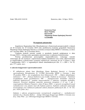 1 Znak: WK-6101/14/4/10 Katowice, dnia 14 lipca 2010 r. Szanowna