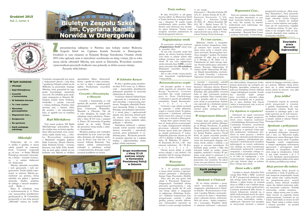 Grudzień 2015 - Dzierzgoń - Zespół Szkół im. Cypriana Kamila