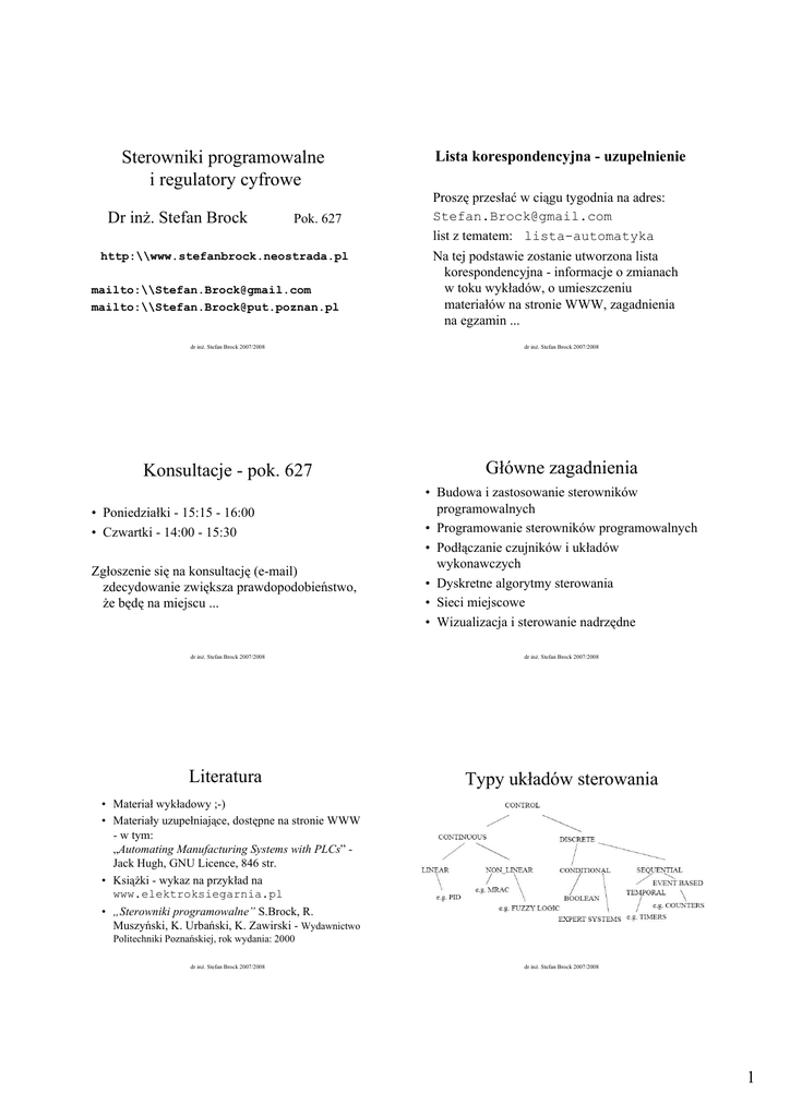 Sterowniki programowalne i regulatory cyfrowe Konsultacje