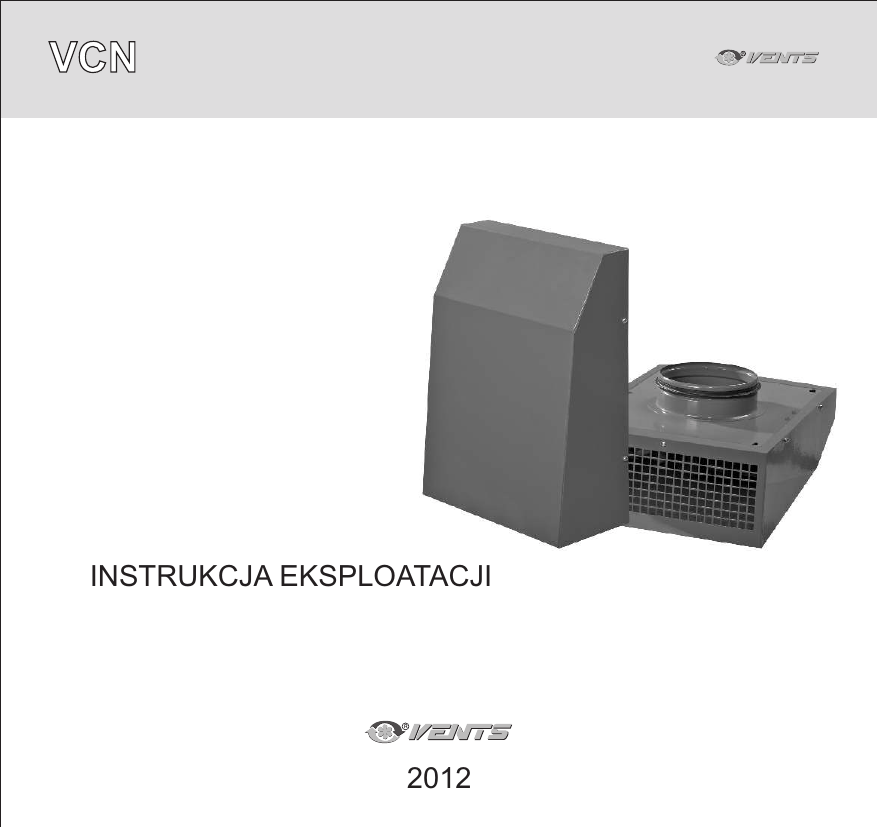 VCN INSTRUKCJA EKSPLOATACJI 2012 VCN 2 PRZEZNACZENIE PODSTAWOWE DANE TECHNICZNE SCHEMAT ZNAKÓW UMOWNYCH Wentylatory promieniowe serii VCN s¹ przeznaczone do wentylacji wywiewnej pomieszczeñ gospodarczych i publicznych (pomieszczenia mieszklane, biura, sklepy, gara¿e, kuchnie, ³azienki i inne pomieszczenia). Wentylatory s¹ przeznaczone do monta¿u pionowego na wylotach kana³ów wentylacyjnych. Wentylatory przeznaczone do d³ugotrwa³ej pracy bez od³¹czenia od zasilania. Stopieæ ochrony przed dostêpem do czêœci niebezpiecznych oraz przed dostaniem siê wody: IPX4. Minimalna temperatura pracy przemieszczanego powietrza: -15°C, krótkotrwale do -30°C, maksymlna dopuszczalna temperatura: +50°C. Powietrze przemieszczane nie mo¿e zawieraæ kurz, sta³e domiszki, substancje lepkie czy mat w³ókniste. Konstrukcja wentylatorów jest ci¹gle doskonalona, dlatego niektóre modele mog¹ nieznacznie ó¿niæ siê od okreœlonych w niniejszej dokumentacji. Oznakowanie wentylatorów, wymiary zewnêtrzne, wymiary zwi¹zane i paramerty podano w tablicach 1, 2, 3 oraz na rys. 1. VENTS VCN X K Wentylator w wykonaniu z zaworem zwrotnym œrednica kana³u, mm 100, 125, 150, 160, 200 VCN 3 Wzór znaków umownych Wentylator odœrodkowy VENTS VCN 100 do monta¿u do kana³ów wentylacyjnych o œrednicy Ø 100 mm. Wentylator odœrodkowy VENTS VCN 150 K z zaworem zwrotnym do monta¿u do kana³ów wentylacyjnych o œrednicy Ø 100 mm. 1 - obudowa; 2 - pokrywa; 3 - wspornik; 4 - wspornik; 5 - turbina; 6 - wkrêt samogwintuj¹cy; 7 - skaplacz; 8 - tabliczka zaciskowa; 9 - króciec (w wykonaniu VCN…K w zestawie z zaworem) 1 Tablica 1 Wymiary, mm Typ wentylatora D L B H Masa, kg VCN 100 / VCN 100 Ê 100 355 260 140 3,60 VCN 125 / VCN 125 Ê 125 355 260 140 3,60 VCN 150 / VCN 150 Ê 150 400 300 140 4,70 VCN 160 / VCN 160 Ê 160 400 300 140 4,70 VCN 200 / VCN 200 Ê 200 400 300 140 4,70 VCN 4 Tablica 2 Typ wentylatora V, 50 Hz W À m3/h RPM dB(A) VCN 100 / VCN 100 Ê 1~ 230 71 0,31 325 (295*) 2530 0,33 485 (450*) 0,42 630 (565*) 0,41 650 (590*) 0,42 700 (640*) VCN 125 / VCN 125 Ê VCN 150 / VCN 150 Ê VCN 160 / VCN 160 Ê VCN 200 / VCN 200 Ê 1~ 230 1~ 230 1~ 230 1~ 230 75 96 95 96 0 C IP 54 55 IP X4 2475 54 55 IP X4 2400 58 55 IP X4 2440 60 55 IP X4 2515 62 55 IP X4 * - dla modeli z wbudowanym zaworem zwrotnym (VCN … K) Tablica 3 Typ wentylatora VCN 100 / VCN 100 Ê V, 60 Hz 1~ 230 W 92 À m3/h RPM dB(A) 0,40 350 (320*) 2625 0 C IP 54 55 IP X4 2570 54 55 IP X4 VCN 125 / VCN 125 Ê 1~ 230 98 0,43 500 (465*) VCN 150 / VCN 150 Ê 1~ 230 100 0,44 650 (595*) 2270 58 55 IP X4 VCN 160 / VCN 160 Ê 1~ 230 96 0,42 685 (625*) 2400 60 55 IP X4 0,42 710 (650*) 2555 62 55 IP X4 VCN 200 / VCN 200 Ê 1~ 230 97 * - dla modeli z wbudowanym zaworem zwrotnym (VCN … K) VCN 5 W przypadku stosowania wentylatora w wilgotnych warunkach, które wg stopnia ochrony WYMOGI odpowiadaj¹ drugiej cyfrze okreœlaj¹cej IPX4, niezbêdna jest dodatkowa ochrona przez BEZPIECZEÑSTWA przedostaniem siê wilgoci. W celu ochrony wentylatora przed przedostaniem siê wilgoci nale¿y go zamontowaæ pod dachem lub zmontowaæ daszek nad otworem wlotowym wentylatora. Nale¿y przedsiêwzi¹æ odpowiednie œrodki do uniemo¿liwienia przep³ywu gazów do pomieszczenia przez otwarte kana³y kominowe lub inne instalacje przeciwpo¿arowe. Monta¿ i przy³¹czenie mog¹ byæ wykonywane tylko przez przeszkolonego i uprawnionego fachowca elektryka zgodnie z obowi¹zuj¹c¹ dokumentacj¹ normatywn¹. Obs³ugê i naprawê wentylatora na³e¿y przeprowadzaæ wy³¹cznie po od³¹czeniu go od zasilania. Przed pod³¹czeniem wentylatora do zasilania nale¿y przekonaæ siê o braku widocznych wad wirnika, obudowy, oraz ¿e w czêœci przep³ywowej obudowy nie pozosta³y obce przedmioty, które mog¹ uszkodziæ ³opatki wirnika. Zabrania siê stosowania wentylatora do mieszanek powietrza zagra¿aj¹cych wybuchem lub po¿arem. ! UWAGA Wentylator (rys. 1) sk³ada siê z obudowy 1, do której za pomoc¹ wkrêtów samogwintuj¹cych 6 jest BUDOWA przy³¹czona pokrywa 2. Wewn¹trz obudowy na wspornikach 3, 4 zamontowana jest turbina 5 o ruchu WENTYLATORA obrotowym prawostronnym, skraplacz 7 i tabliczka zaciskowa 8 do pod³¹czenia sieci jednofazowej. Na obudowie zmontowany króciec wlotowy 9 dla przy³¹czenia do przewodu powietrznego. Wentylator montowany w pozycji pionowej (rys.2). WSKAZÓWKI DOTYCZ¥CE INSTALACJI I MONTA¯ VCN 6 2 Monta¿ wentylatora nale¿y wykonywaæ wy³¹cznie po od³¹czeniu jego od zasilania (rys.3). W celu monta¿a wentylatora na œcianê nale¿y wykrêciæ wkrêty samogwintuj¹ce przy³¹czeniow zdj¹æ pokrywê 2 (rys.4). Po przewierceniu w œcianie otworów na ko³ki rozporowe zgodnie z odpowiednimi punktami na obudowie wentylatora (rys.5, 6, 7) zamontowaæ wentylator za pomoc¹ wkrêtów (rys. 8), przeci¹gaj¹c przewód przez wejœcie ciœnieniowe. 3 4 VCN 7 5 6 7 8 VCN 8 POD£¥CZENIA WENTYLATORA DO SIECI Do pod³¹czenia wentylatora do sieci jednofazowej stosuje siê wy³¹cznik samoczynny wbudowan do instalacja stacjonarnej. Przy pod³¹czeniu sprowadziæ sieæ do stanu bezpr¹dowego (rys.9). Przerwa stykowa na wszystkich biegunach wymykaczy powinna wynosiæ nie mniej ni¿ 3 mm. Kabel zasilaj¹cy pod³¹czyæ do tabliczki zaciskowej 8 zgodnie ze schematem na wsporniku 3 (ry Za³o¿yæ pokrywê 2 i dokrêciæ wkrêty samogwintuj¹ce 6 (rys.12). S1 L X L yellow-green ~ N blue N black brown ZESTAW 9 10 11 12 Zestaw sk³ada siê z: - wentylator 1 szt.; - ko³ek rozporowy z wkrêtem samogwintuj¹cym 4 szt.; - dokumentacja 1 szt.; - opakowanie 1 szt. VCN 9 Obs³ugê techniczn¹ wentylatora nale¿y przeprowadzaæ wy³¹cznie po wczeœniejszym od³¹czeniu jego OBS£UGA od zasilania. TECHNICZNA Obs³uga techniczna polega na okresowym oczyszczeniu powierzchni wentylatora z kurzu i brudu. Do usuniêcia kurzu nale¿y u¿yæ miêkkiej suchej szczotki lub sprê¿onego powietrza (rys.13). £opatki wirnika wymagaj¹ dok³adnego oczyszczenia co