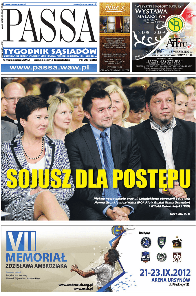 WYCHODZI OD 2000 ROKU ISSN 1640–405X 6 września 2012 czasopismo bezpłatne Nr 35 (625) FOTO LECH KOWALSKI Piękną nową szkołę przy ul. Lokajskiego otworzyli od lewej: Hanna Gronkiewicz-Waltz (PO), Piotr Guział (Nasz Ursynów) i Witold Kołodziejski (PiS) Czyt. str. 8 i 9 2 Lepszy Guział niż guziec M S to chyba na głowę upadli. Rejon śródmiejski jest bowiem tak rozkopany, że nawet w 1944 łatwiej się było przebić przez ruiny po Powstaniu Warszawskim. Dlatego o wiele lepszym wyjściem jest pozostawanie na południu miasta. Mijający tydzień upływa nam pod znakiem starego hasła Jana Tadeusza Stanisławskiego: „Z jednej strony śmiech szalony, z drugiej strony gorzka łza”. Tę ostatnią trzeba uronić w związku ze śmiercią dwu ludzi, którzy byli związani z Ursynowem. Odeszli bowiem na zawsze mieszkający ostatnio w tej dzielnicy piosenkarz Waldemar Kocoń i niegdysiejszy tubylec Józef Szaniawski, który mieszkał kiedyś w tej samej klatce budynku przy ulicy Nutki co ja. Był wtedy oficjalnie dzien- ców telewizyjne kamery. Teraz niemal każdy dzień przynosi internetowe deliberacje: czy Natalia gdzieś tam wystąpiła bez stanika, a gdzie indziej całkiem bez cycków. Gdybyż budząc się rano każdy Polak stawał li tylko przed takim problemem... nani z błazeństwa dziennikarze Jakub Wojewódzki i Michał Figurski pozwolili sobie niedawno zażartować z Ukrainek, które wykonują w Polsce ten rodzaj pracy, jaki w okresie niewolnictwa powierzano w Stanach Zjednoczonych Murzynkom, traktując je jako istoty niższego gatunku. Chłopcy nie mają pewnie nic wspólnego ze sportem i nie wiedzą, że nawet najsprytniejszy cios nie może być wymierzony poniżej pasa. Sam akurat dobrze pamiętam, jak parę dziesiątków lat temu takimi Ukrainkami w Niemczech, Francji, Wielkiej Brytanii i USA były Polki, usiłujące zarobić na mieszkanie w dobie PRL, gdy w kraju przeciętna pensja miesięczna wynosiła 20 dolarów. Teraz mamy całą kolonię ukraińską wokół Warszawy, a w Konstancinie sprzątające u tamtejszych bogaczy dziewczyny z Ukrainy mogłyby nawet założyć związek zawodowy. To w większości nadzwyczaj dzielne kobiety, zarabiające na utrzymanie synów i córek oraz pozostawionego w domu męża-pijaka. Co ciekawe, zatrudniający Ukrainki warszawscy i podwarszawscy bogacze wcale nie traktują ich źle, bo sami pamiętają, jak zaczynali się kiedyś dorabiać, mając świadomość, iż żadna praca nie hańbi. Jeden z mują lumpy pijące wódkę, rżnące w pokera i klnące nader soczyście. łone ceny paliwa samochodowego sprawiły, że mieszkańcy Góry Kalwarii, Zalesia Górnego, Piaseczna, Jeziorek przestali dojeżdżać do Warszawy samochodami, które zostawiają przy stacjach kolejowych przesiadając się do pociągów. Pozostawione na cały dzień auta padają coraz częściej łupem złodziei, dla których to całkiem bezpieczny biznes, bo tymi improwizowanymi parkingami nie interesuje się ani straż kolejowa, ani policja. Nic dziwnego, że co bardziej wysportowani mieszkańcy suburbii – jak na przykład redaktor Radosław Leniarski z Gazety Wyborczej – wsiadają po prostu na rower i przekradają się do wielkiego miasta lasami. Nie każdy jednak dorównuje kondycją Leniarskiemu. Onże w roku 2004 potrafił przebiec w Atenach cały dystans klasycznego maratonu w pełnej zbroi hoplity, bijąc na głowę rekordzistkę świata na tym dystansie Paulę Radcliffe, która nie zdołała dociągnąć do mety. eszcze lepsza od Leniarskiego jest wszakże nasza do niedawna najlepsza biegaczka maratońska, mieszkanka Piaseczna Renata Sobiesiak-Paradowska, Widuję ją często, jak sprawnie przemierza biegiem wielokilometrową trasę,którą ja usiłuję pokonać samochodem. Paradowska na ogół jest szybsza, bo nie musi tkwić w korkach. Nawiasem mówiąc, wszyscy ci, którzy zmierzają codziennie do centrum Warszawy, nikarzem Polskiej Agencji Prasowej, w skrytości swego ursynowskiego mieszkania wszelako przygotowywał korespondencje dla Radia Wolna Europa, dopóki bezpieka go nie nakryła. ocoń i Szaniawski mieli i swoich wielbicieli, i przeciwników, dziś jednak należy im się wyłącznie dobre słowo, tym bardziej, że w perspektywie nadchodzącego weekendu bardziej nam się przyjdzie weselić niż smucić. Już miniony weekend był pełen atrakcji, zwłaszcza na Ursynowie, bo burmistrz Guział zorganizował mieszkańcom dwie fety. Jedną był piknik na terenie Wyścigów Konnych z gonitwą o puchar włodarza dzielnicy i biegiem na przełaj, drugą zaś zlot motocyklistów pod ratuszem. Wygląda na to, że będącego w połowie kadencji Guziała ursynowianie będą znacznie lepiej oceniać niż guźca – legendarnego dzika afrykańskiego, który w 1996 wymknął się z transportu warszawskiego ZOO i buszował ponoć w Lesie Kabackim. Guziec stał się enigmą, bo go nigdy nie znaleziono. W przeciwieństwie do niego Guział jest na co dzień w ratuszu, pozostając w kontakcie z mieszkańcami. jeśli chodzi o atrakcje najbliższych dni, to polecam otwarte ogrody i zlot zabytkowych samochodów włoskich w Konstancinie, motocyklową paradę w Mysiadle, kaskaderski show w Piasecznie i fortepianowy koncert Leszka Możdżera w Wilanowie. Rozrywki nigdy dość. PA S S M I TA PETRO / AUGUSTYN edia bardziej dziś tkwią w życiu wirtualnym niż w realu. Dlatego przeglądając krajowe portale internetowe można dojść do wniosku, że tego lata najważniejszą sprawą Polaków było analizowanie kolejnych kreacji Natalii Siwiec – ni to modelki, ni to kumpelki, która stała się gwiazdą od momentu, gdy podczas piłkarskich mistrzostw Europy jej urodziwe oblicze wyszperały w tłumie kibi- moich sąsiadów, wielki luzak lubiący urządzać u siebie mecze siatkówki z udziałem pań i panów bez jakiegokolwiek przyodziewku, uważa, że pracująca u niego Ukrainka jest członkiem rodziny, więc kiedy zabiera żonę i dzieci na obiad do restauracji, ona id