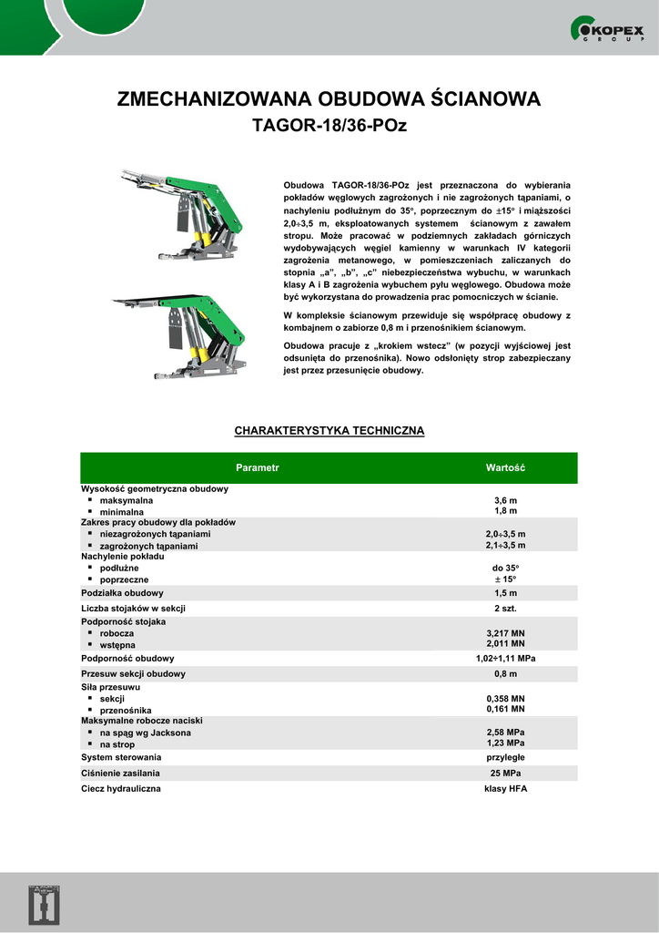 ZMECHANIZOWANA OBUDOWA ŚCIANOWA TAGOR-18/36-POz