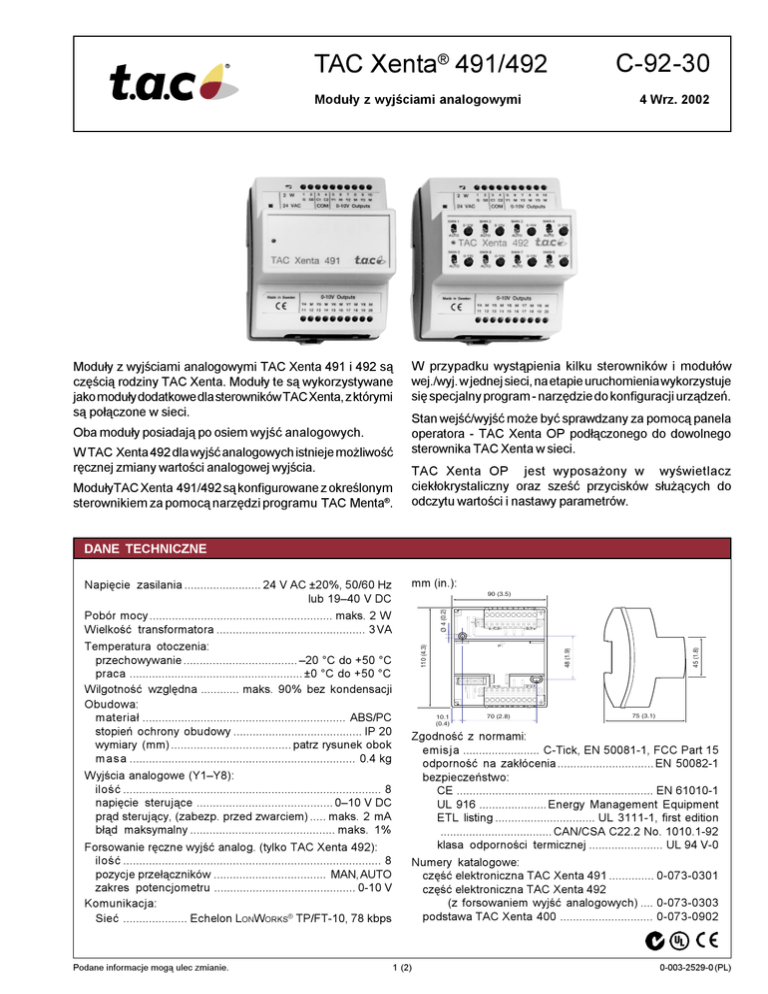 TAC Xenta® 491/492 C-92-30