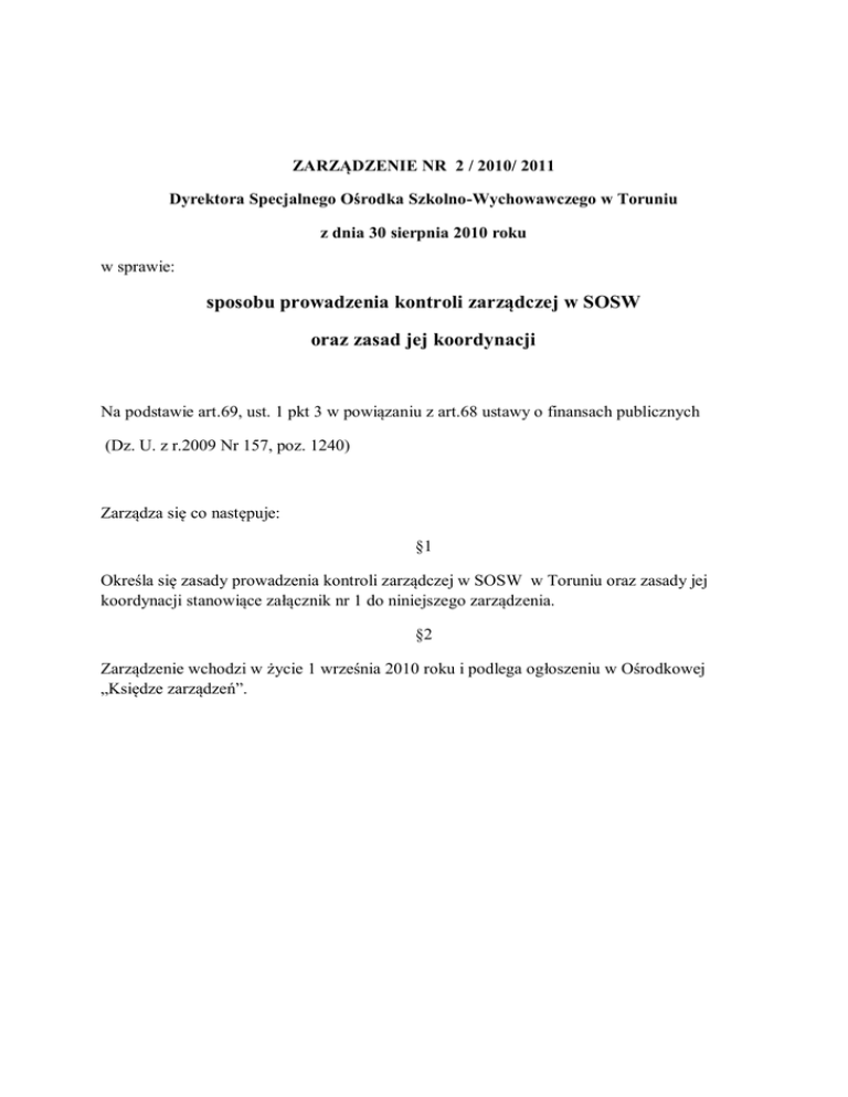 ZARZĄDZENIE NR 2 / 2010/ 2011