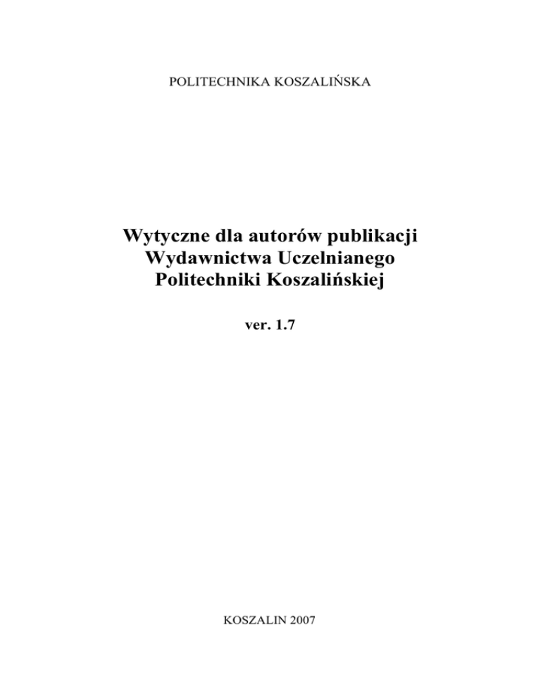 WYTYCZNE DLA AUTORÓW - Politechnika Koszalińska