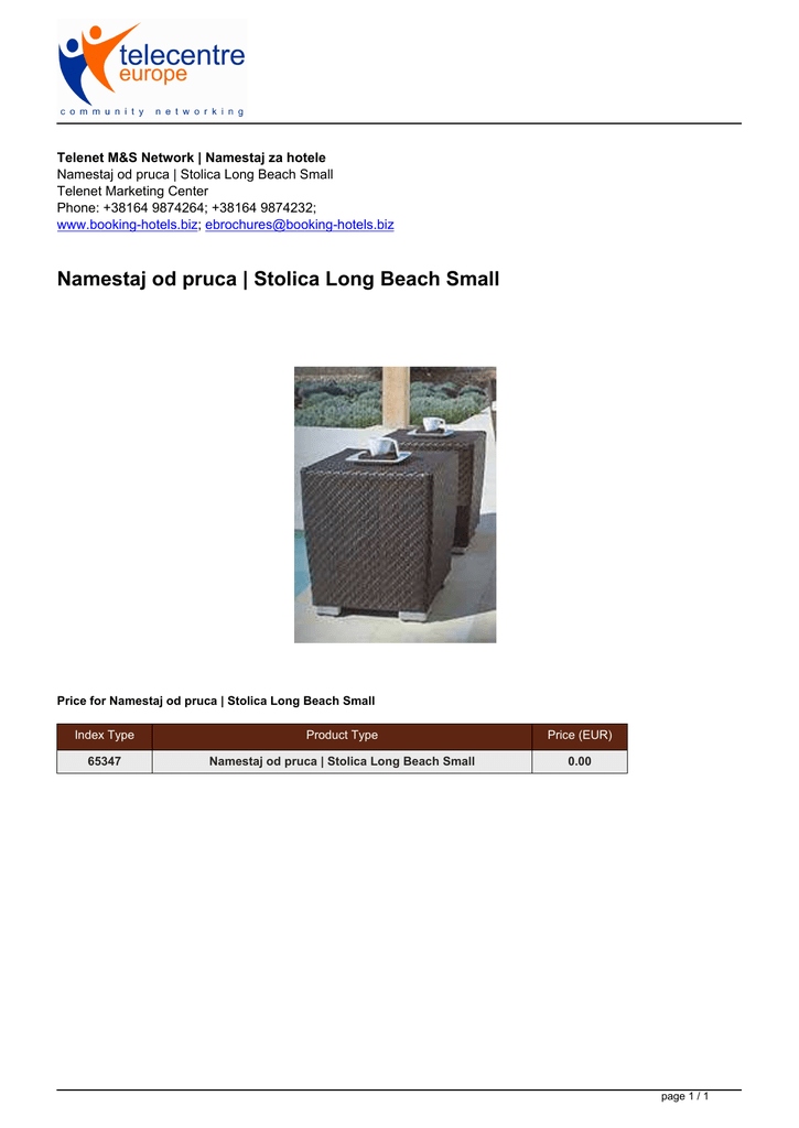 Telenet M&S Network | Namestaj za hotele Namestaj od pruca | Stolica Long Beach Small Telenet Marketing Center Phone: +38164 9874264; +38164 9874232; www.booking-hotels.biz; [email protected] Namestaj od pruca | Stolica Long Beach Small Price for Namestaj od pruca | Stolica Long Beach Small Index Type Product Type Price (EUR) 65347 Namestaj od pruca | Stolica Long Beach Small 0.00 page 1 / 1