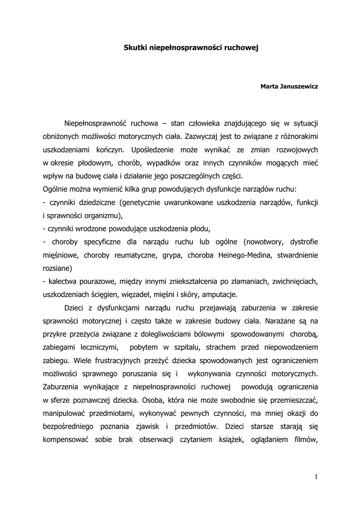 1 Skutki niepełnosprawności ruchowej Niepełnosprawność ruchowa