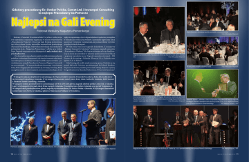 Gdańscy pracodawcy Dr. Oetker Polska, Cemet Ltd. i Inwestpol Consulting to najlepsi Pracodawcy na Pomorzu Najlepsi na Gali Evening Patronat Medialny Magazynu Pomorskiego Konkurs „Pomorski Pracodawca Roku” to jedna z wielu inicjatyw największej i najstarszej organizacji w naszym województwie „Pracodawców Pomorza”. Uroczysta Gala Evening pod patronatem Mieczysława Struka, marszałka województwa pomorskiego i Ryszarda Stachurskiego, wojewody pomorskiego oraz medialnym patronatem m.in. „Magazynu Pomorskiego” odbyła się w Amber Expo. Nagrody wręczono w trzech kategoriach: małe, średnie i duże przedsiębiorstwo. – Do obowiązków pracodawców należy nie tylko terminowe płacenie podatków i zobowiązań finansowych, ale również tworzenie właściwych warunków pracy i możliwości rozwoju, kwalifikacji pracowników – powiedział prezes zarządu Pracodawców Pomorza, Zbigniew Canowiecki na uroczystej gali. – W naszym konkursie doceniamy i wyróżniamy firmy, które osiągają zysk, dynamicznie się rozwijają, inwestują, kładą szczególny nacisk na innowacyjność, nowoczesne technologie, ale też nigdy nie zapominają o etyce i odpowiedzialności społecznej, szczególnie w stosunku do swoich pracowników. Laureatami tegorocznej edycji są wszyscy wyróżnieni i nominowani, ale postanowiliśmy wyróżnić po jednej w każdej kategorii. W tym roku wręczono nagrody dodatkowe. Z inicjatywy „Human Concept & Solutions” przyznano nagrody specjalne „Pracodawca z Wyboru” dla firm wyróżniających się działalnością na rzecz pracowników w zakresie podnoszenia kwalifikacji i poprawy warunków pracy. Nagrody specjalne otrzymali – HK Finance & Accouting z Gdańska, Elewacje S.A. z Gdańska oraz Iglotex S.A. ze Skórcza. Gala Evening jak zwykle miała uroczystą oprawę. Przybyło na nią ponad 400 osób. Gościem specjalnym gali był Marek Kondrat. W przerwie licznie przybyli goście mieli okazję obejrzeć wystawę fotografii autorstwa Henryka Pietkiewicza „W barwach bursztynu”. Marek Kondrat w dowcipny sposób opowiadał o sztuce picia wina. Foto: Mieczysław Majewski W uroczystości wzięło udział 400 osób. Foto: Mieczysław Majewski Zbigniew Canowiecki prezes Pracodawców Pomorza i Marek Kondrat aktor i koneser win. Foto: Mieczysław Majewski W kategorii małe przedsiębiorstwo zatrudniające do 50 pracowników statuetka Pomorski Pracodawca Roku 2012 trafiła do firmy Inwestpol Consulting z Gdańska. W tej kategorii laureatami zostały także firmy Aiton Caldwell z Gdańska, BMB Santech z Gdańska i Insoft Consulting z Gdańska. W kategorii średnie przedsiębiorstwo zatrudniające od 50 do 250 osób główną nagrodę zdobyła spółka Cemet Ltd. z Gdańska. Laury w tej kategorii otrzymała także firma Łączpol z Gdańska, Przedsiębiorstwo Zieleń z Gdańska oraz portal Trojmiasto.pl. W kategorii duże przedsiębiorstwo główną nagrodą wyróżniono firmę Dr. Oetker Polska z Gdańska. W tej kategorii laureatami zostali także Ares Service z Gdańska, Iglotex ze Skórcza oraz Poldanor z Przechlewa. Od prawej siedzą: marszałek Senatu RP Bogdan Borusewicz, wojewoda pomorski Ryszard Stachurski, wicemarszałek województwa pomorskiego Ryszard Świlski oraz Sławomir Rybicki - sekretarz stanu w Kancelarii Prezydenta RP wręcza nagrodę asystent wojewody Marcin Kurkowski. Foto: Mieczysław Majewski w kategorii Średnie Przedsiębiorstwo dla firmy Cemet Ltd sp. z o.o. reprezentowanej przez prezesa Kazimierza Lewandowskiego fot. Mateusz Ochocki / KFP Przemawia prezes firmy Inwestpol Consulting Kazimierz Sokołowski, który otrzymał statuetkę i tytuł Pracodawcy Roku w kategorii Małe Przedsiębiorstwo. Foto: Mieczysław Majewski 10 MAGAZYN POMORSKI Nagroda w kategorii Duże Przedsiębiorstwo dla firmy Dr Oetker sp. z o.o. reprezentowanej przez prezesa Roberta Zielińskiego Fot. Maciej Kosycarz / KFP MAGAZYN POMORSKI 11