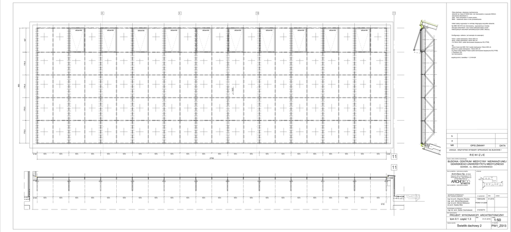 8 9 10 Okna dachowe otwierane mechanicznie siłowniki np: Geze E1500S Solo lub równoważne o wysuwie 500mm sterowanie siłownikami z: SAP- okna zamykane w czasie pożaru BMS - otwieranie okien w celu przewietrzania 11 Układ należy wyposażyć w centralę integrującą wszystkie siłowniki. siłowniki siłowniki siłowniki siłowniki siłowniki siłowniki siłowniki siłowniki siłowniki Np MBZ 300 N72 lub równoważną , wyposażoną w moduły sterujące siłownikami oraz moduł zabezpieczający przed niekorzystnymi warunkami atmosferycznymi (wiatr, deszcz). siłowniki Konfiguracja szklenia (od zewnątrz do wewnątrz) 187 10mm (szkło hartowane) /16mm 90% Ar /8mm (szkło hartowane) /16mm 90% Ar /10,76mm SGG (szkło laminowane bezpieczne 55.2 PVB) 18° np; 10mm Cool-Lite SKN 154 II (szkło hartowane) /16mm 90% Ar /8mm PLC (szkło hartowane) /16mm 90% Ar /10,76mm SGG Stadip Protect (szkło laminowane bezpieczne 55.2 PVB) + Planitherm XN lub równoważne 176,5 176,5 176,5 33% b a NR OPIS ZMIANY DATA UWAGA : WSZYSTKIE WYMIARY SPRAWDZIĆ NA BUDOWIE ! 123 34,5 123 123 123 123 123 123 123 123 123 123 123 123 123 123 123 123 123 123 123 123 123 34,5 11 2706 REWIZJE nazwa i adres obiektu budowlanego BUDOWA CENTRUM MEDYCYNY NIEINWAZYJNEJ GDAŃSKIEGO UNIWERSYTETU MEDYCZNEGO 11 GDAŃSK, UL. SMOLUCHOWSKIEGO biuro projektów - wykonawca projektu schemat Arch-Deco Sp. z o.o. Gdynia 81-363 ul.Starowiejska 41-43 +48 58 660 81 20, www.archdeco.pl, [email protected] biuro projektów - wykonawca projektu specjalność architektoniczna , imie i nazwisko projektanta 123 33,5 123 123 123 123 123 123 123 123 123 123 123 123 123 123 123 123 123 123 123 123 123 33,5 893 176,5 współczynnik U świetlika < 1,5 W/m2K mgr inż.arch. Zbigniew Reszka mgr arch. Michał Baryżewski mgr inż.arch. Michał Afeltowicz inż.arch. Natalia Miler nr uprawnień 1398/Gd/84 data podpis 01.2016 POKK/131/2006 sprawdzający architekturę: mgr inż. arch. Stefan Ciecholewski 314/GD/74 tytuł opracowania PROJEKT WYKONAWCZY ARCHITEKTONICZNY tom II.1 część 1.3 skala data 31.01.2016 1:50 nr rysunku nazwa rysunku Świetlik dachowy 2 PW1_ZS13