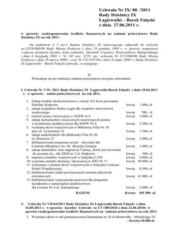Uchwała Nr IX/ 80 /2011 Rady Dzielnicy IX Łagiewniki – Borek
