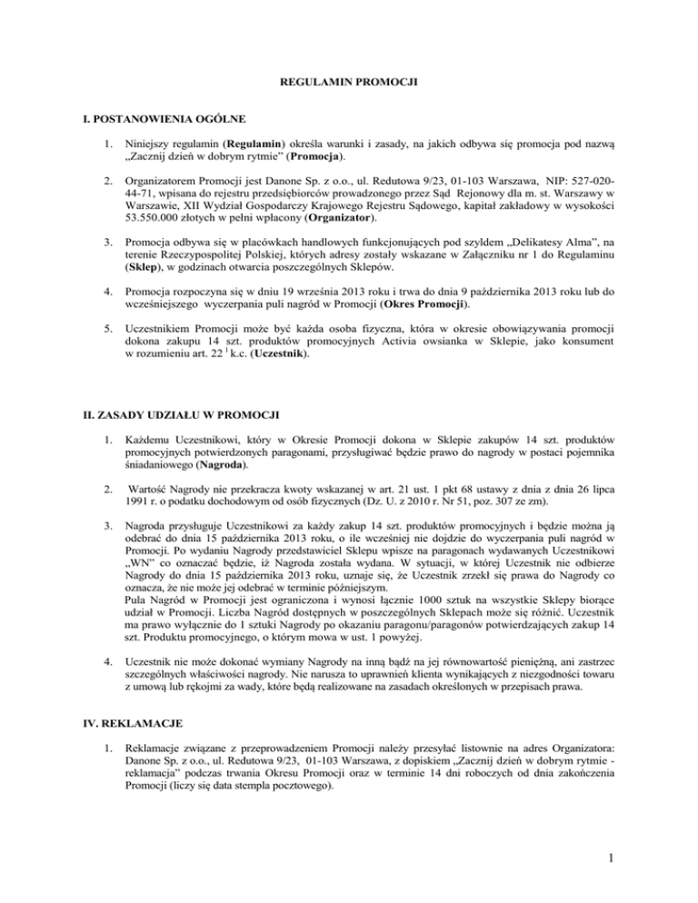 Regulamin- zacznij dzien w dobrym rytmie