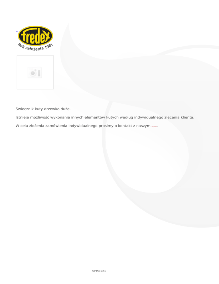 Świecznik kuty drzewko duże. Istnieje możliwość wykonania innych elementów kutych według indywidualnego zlecenia klienta. W celu złożenia zamówienia indywidualnego prosimy o kontakt z naszym . biurem Strona 1 z 1