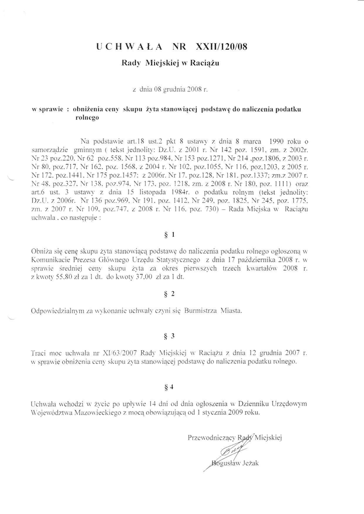obniza się cenę skupu Żyta stanowiącą podstawę do naliczenia podatku rolnego ogłoszoną \ł