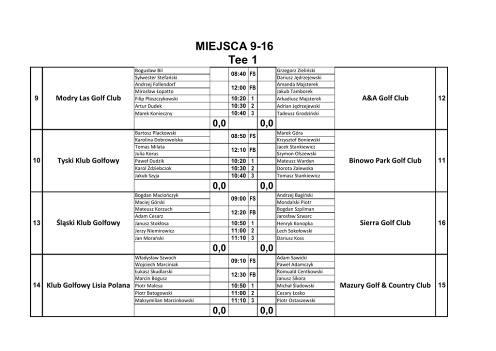 MIEJSCA 9-16 Tee 1 - Polishchampionships.pl