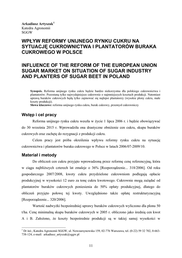 Wpływ reformy rynku cukru na sytuację cukrownictwa i plantatorów