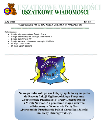 Otwórz gazetkę z Maja 2011r. - Przedzkole 10 im. Misia Uszatka w
