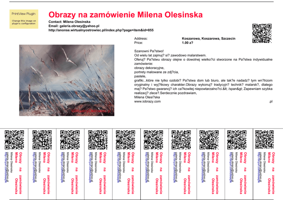 Obrazy na zamówienie Milena Olesinska Contact: Milena Olesinska Email: [email protected] http://anonse.wirtualnyostrowiec.pl/index.php?page=item&id=855 Obrazy Milena na na zamówienie Olesinska zamówienie Olesinska Milena Olesinska [email protected] http://tinyurl.com/o8xaq9k Obrazy Milena na zamówienie Olesinska Milena Olesinska [email protected] http://tinyurl.com/o8xaq9k Obrazy Milena na zamówienie Olesinska Milena Olesinska [email protected] http://tinyurl.com/o8xaq9k Obrazy Milena na zamówienie Olesinska Milena Olesinska [email protected] http://tinyurl.com/o8xaq9k Obrazy Milena na zamówienie Olesinska Milena Olesinska [email protected] http://tinyurl.com/o8xaq9k Obrazy Milena na zamówienie Olesinska Milena Olesinska [email protected] http://tinyurl.com/o8xaq9k Obrazy Milena na zamówienie Olesinska Milena Olesinska [email protected] http://tinyurl.com/o8xaq9k Obrazy Milena na zamówienie Olesinska Milena Olesinska [email protected] http://tinyurl.com/o8xaq9k Obrazy Milena na zamówienie Olesinska Milena Olesinska [email protected] http://tinyurl.com/o8xaq9k Obrazy Milena Milena Olesinska [email protected] http://tinyurl.com/o8xaq9k Powered by TCPDF (www.tcpdf.org) Koszarowa, Koszarowa, Szczecin 1.00 z? Address: Price: Szanowni Pa?stwo! Od wielu lat zajmuj? si? zawodowo malarstwem. Oferuj? Pa?stwu obrazy olejne o dowolnej wielko?ci stworzone na Pa?stwa indywidualne zamówienie: obrazy dekoracyjne, portrety malowane ze zdj?cia, pastele, grafiki...które nie tylko ozdobi? Pa?stwa dom lub biuro, ale tak?e nadadz? tym wn?trzom oryginalny i wyj?tkowy charakter.Obrazy wykonuj? tradycyjn? technik? malarsk?, dlatego maj? Pa?stwo gwarancj? ich ca?kowitej niepowtarzalno?ci.< /span> Zapewniam szybka realizacj? zlece?.Serdecznie pozdrawiam, Milena Olesi?ska www.iobrazy.com .pl