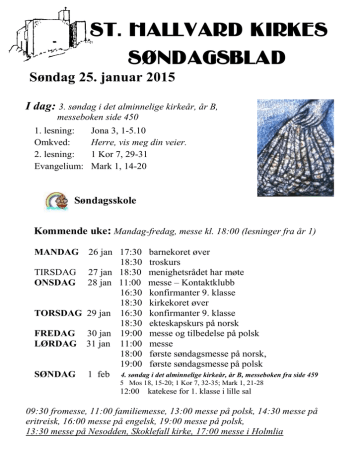 Søndagsblad for 25. januar 2015 - St Hallvard menighet