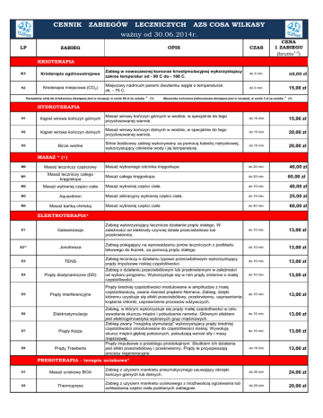 ważny od 30.06.2014r. CENNIK ZABIEGÓW LECZNICZYCH AZS