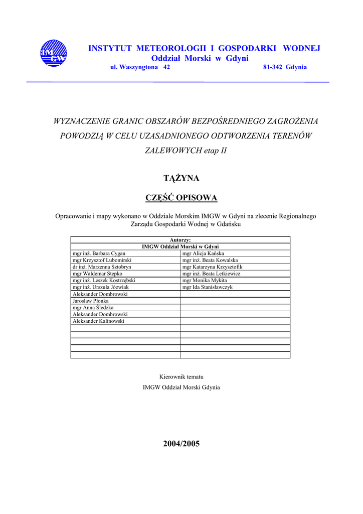 Tążyna - opis opracowania - regionalny zarząd gospodarki wodnej