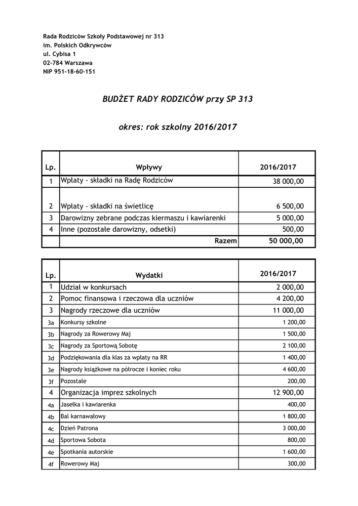 3.BUDŻET RADY RODZICÓW przy SP 313