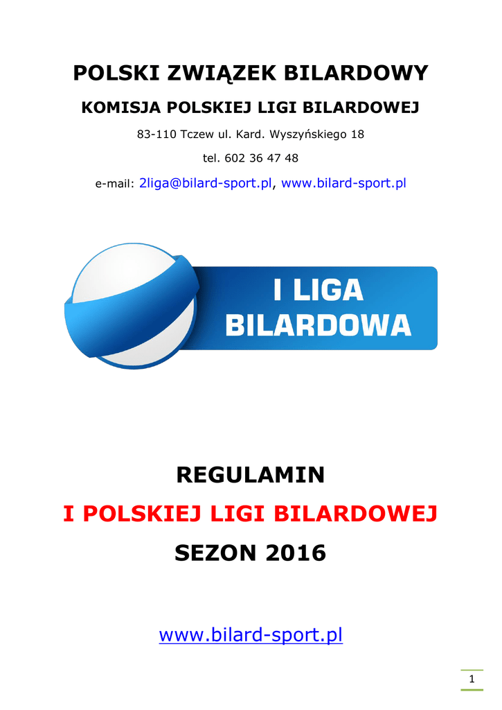REGULAMIN I POLSKIEJ LIGI BILARDOWEJ SEZON 2016
