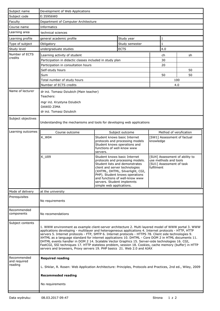 Data wydruku: 24.01.2017 07:40 Strona 1 z 2 Subject name