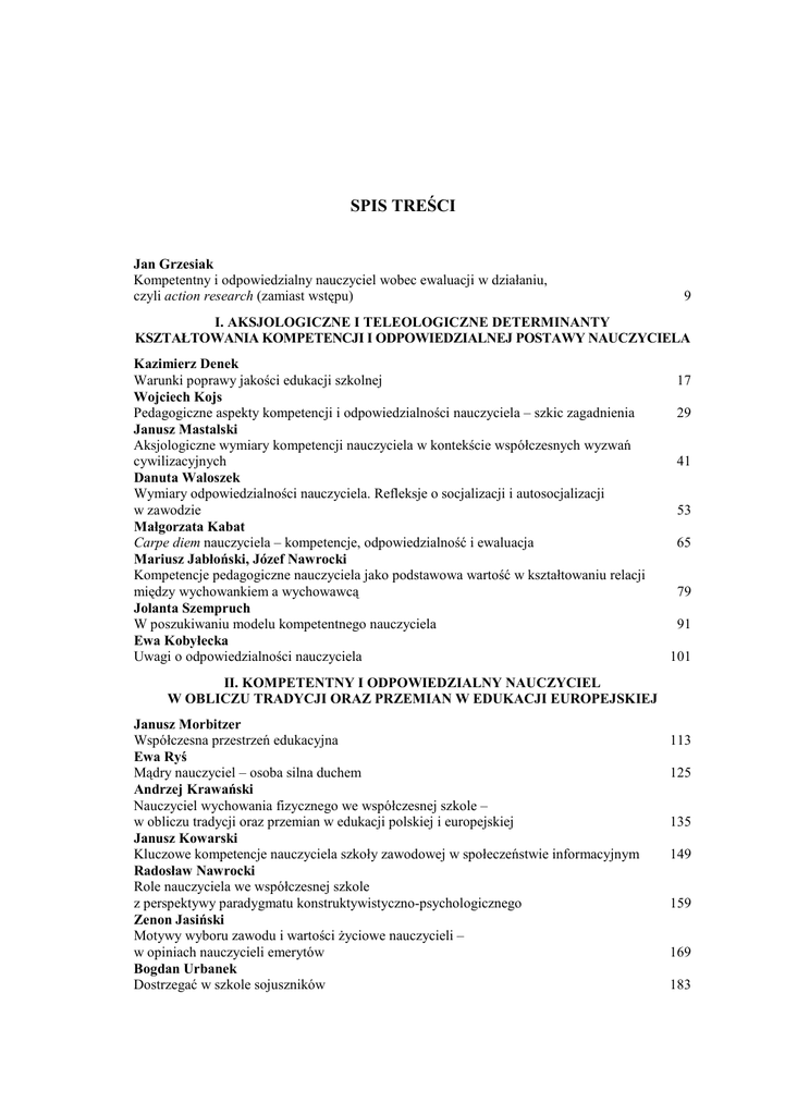 Spis treści "Ewaluacja i innowacje w edukacji. Kompetencje i