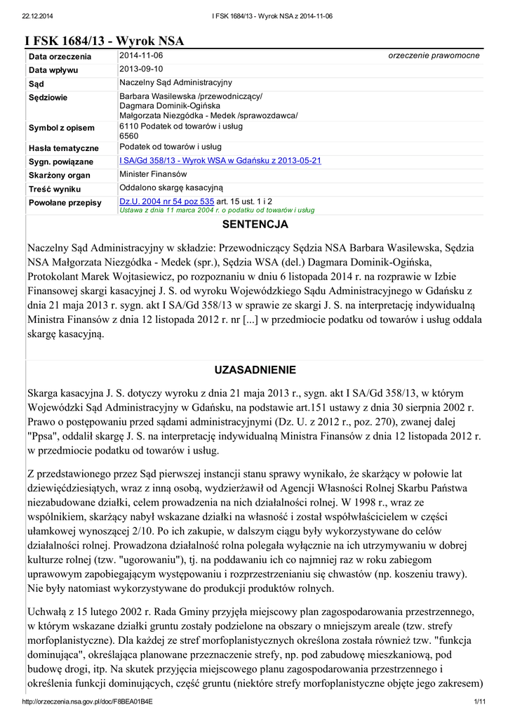 I FSK 1684/13 Wyrok NSA