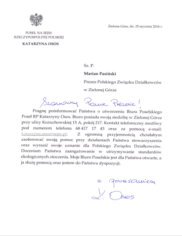 Poseł RP Katarzyny Osos. Biuro posiada swoją siedzibę w Zielonej Gorze