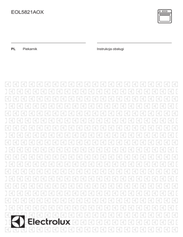 EOL5821AOX PL Piekarnik Instrukcja obsługi 2 www.electrolux.com SPIS TREŚCI 1. INFORMACJE DOTYCZĄCE BEZPIECZEŃSTWA........................................... 3 2. WSKAZÓWKI DOTYCZĄCE BEZPIECZEŃSTWA............................................ 4 3. OPIS URZĄDZENIA........................................................................................... 7 4. PANEL STEROWANIA.......................................................................................8 5. PRZED PIERWSZYM UŻYCIEM......................................................................10 6. CODZIENNA EKSPLOATACJA....................................................................... 10 7. FUNKCJE ZEGARA......................................................................................... 14 8. PROGRAMY AUTOMATYCZNE...................................................................... 15 9. KORZYSTANIE Z AKCESORIÓW................................................................... 16 10. DODATKOWE FUNKCJE...............................................................................18 11. WSKAZÓWKI I PORADY............................................................................... 20 12. KONSERWACJA I CZYSZCZENIE................................................................ 31 13. ROZWIĄZYWANIE PROBLEMÓW................................................................ 34 14. INSTALACJA.................................................................................................. 36 15. EFEKTYWNOŚĆ ENERGETYCZNA............................................................. 37 Z MYŚLĄ O TOBIE Dziękujemy za zakup urządzenia Electrolux. Jest ono owocem dziesięcioleci doświadczeń i innowacji. To pomysłowe i stylowe urządzenie zostało zaprojektowane z myślą o Tobie. Użytkując je, możesz mieć zawsze pewność uzyskania wspaniałych efektów. Witamy w świecie marki Electrolux! Zapraszamy na naszą witrynę internetową, aby: Otrzymać wskazówki dotyczące użytkowania, broszury, pomoc w rozwiązywaniu problemów oraz informacje dotyczące serwisu: www.electrolux.com/webselfservice Zarejestrować swój produkt i uprościć jego obsługę serwisową: www.registerelectrolux.com Nabyć akcesoria, materiały eksploatacyjne i oryginalne części zamienne do swojego urządzenia: www.electrolux.com/shop OBSŁUGA KLIENTA Zalecamy stosowanie oryginalnych części zamiennych. Kontaktując się z autoryzowanym centrum serwisowym, należy przygotować poniższe dane: model, numer produktu, numer seryjny. Stosowne informacje można znaleźć na tabliczce znamionowej. Ostrzeżenie / Przestroga – Informacje dotyczące bezpieczeństwa Ogólne informacje i wskazówki Informacje dotyczące środowiska naturalnego Producent zastrzega sobie możliwość wprowadzenia zmian bez wcześniejszego powiadomienia. POLSKI 1. 3 INFORMACJE DOTYCZĄCE BEZPIECZEŃSTWA Przed instalacją i rozpoczęciem eksploatacji urządzenia należy uważnie zapoznać się z załączoną instrukcją obsługi. Producent nie odpowiada za uszkodzenia i obrażenia ciała spowodowane nieprawidłową instalacją i eksploatacją. Należy zachować instrukcję wraz z urządzeniem do wykorzystania w przyszłości. 1.1 Bezpieczeństwo dzieci i osób o ograniczonych zdolnościach ruchowych, sensorycznych lub umysłowych • • • • • • • Urządzenie mogą obsługiwać dzieci po ukończeniu ósmego roku życia oraz osoby o ograniczonych zdolnościach fizycznych, sensorycznych lub umysłowych, a także nieposiadające odpowiedniej wiedzy lub doświadczenia, jeśli będą one nadzorowane lub zostaną poinstruowane w zakresie bezpiecznego korzystania z urządzenia i będą świadome związanych z tym zagrożeń. Nie należy pozwalać, aby dzieci bawiły się urządzeniem. Wszystkie opakowania należy przechowywać poza zasięgiem dzieci. Dzieci i zwierzęta nie powinny zbliżać się do pracującego lub stygnącego urządzenia. Łatwo dostępne elementy urządzenia mocno się nagrzewają. Jeśli urządzenie jest wyposażone w blokadę uruchomienia, zaleca się, aby ją włączyć. Czyszczeniem i konserwacją nie mogą zajmować się dzieci bez nadzoru dorosłych. Dzieci poniżej 3 roku życia nie powinny znajdować się w pobliżu urządzenia, jeśli nie są pod stałym nadzorem. 4 www.electrolux.com 1.2 Ogólne zasady bezpieczeństwa • • • • • • • • • Instalacji urządzenia i wymiany jego przewodu zasilającego może dokonać wyłącznie osoba o odpowiednich kwalifikacjach. Podczas pracy urządzenia jego wnętrze silnie się nagrzewa. Nie dotykać elementów grzejnych w urządzeniu. Podczas wyjmowania i wkładania akcesoriów lub naczyń należy zawsze używać rękawic kuchennych. Przed przystąpieniem do konserwacji urządzenia należy odłączyć je od zasilania. Aby uniknąć porażenia prądem, przed przystąpieniem do wymiany żarówki należy upewnić się, że urządzenie jest wyłączone. Nie czyścić urządzenia za pomocą myjek parowych. Do czyszczenia szyb w drzwiach nie należy używać ściernych środków czyszczących ani ostrych, metalowych myjek, ponieważ mogą one porysować powierzchnię, co może skutkować pęknięciem szkła. Jeśli przewód zasilający jest uszkodzony, ze względów bezpieczeństwa musi go wymienić producent, autoryzowane centrum serwisowe lub inna wykwalifikowana osoba. Aby wymontować prowadnice blach, należy odciągnąć najpierw ich przednią, a następnie tylną część od bocznych ścianek. Zamontować prowadnice blach w odwrotnej kolejności. Należy stosować wyłącznie czujkę temperatury zalecaną dla danego modelu urządzenia. 2. WSKAZÓWKI DOTYCZĄCE BEZPIECZEŃSTWA 2.1 Instalacja OSTRZEŻENIE! Urządzenie może zainstalować wyłącznie wykwalifikowana osoba. • Usunąć wszystkie elementy opakowania. • • • Nie instalować ani nie używać uszkodzonego urządzenia. Postępować zgodnie z instrukcją instalacji dostarczoną wraz z urządzeniem. Zachować 