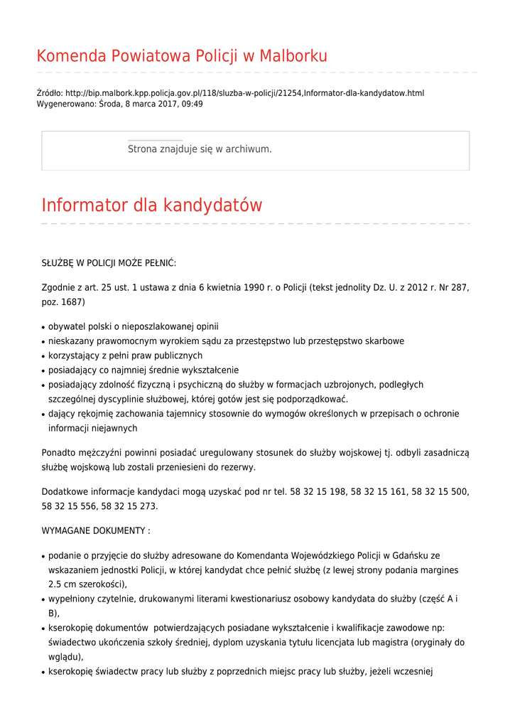 Informator dla kandydatów - Komenda Powiatowa Policji w Malborku