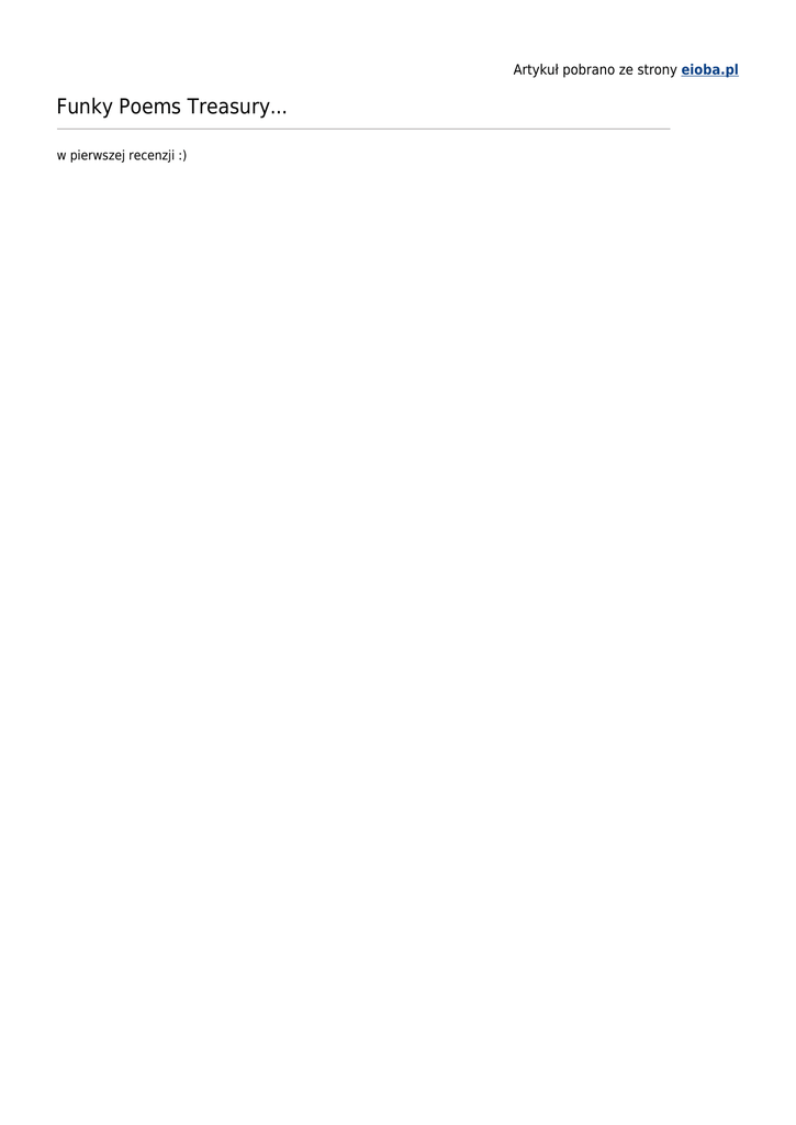 Artykuł pobrano ze strony eioba.pl Funky Poems Treasury... w pierwszej recenzji :) Czy lubicie łamańce językowe, czyli wierszyki niezwykle trudne do wymówienia? Tak? To teraz wyobraźcie sobie takie wierszyki w obcym języku. To dopiero wyższa szkoła jazdy! Na początek zadanie dla chętnych: spróbujcie bardzo szybko przeczytać poniższy wierszyk: Dancing, prancing, stomping feet walking, running, tapping beat. Skipping, jumping here and there, funny feet are everywhere! (s.9) I jak kochani, nie połamaliście sobie języka? Wszyscy zdajemy sobie sprawę, że naukę języka obcego najlepiej zacząć jak najwcześniej. Umysł dziecka jest znacznie bardziej chłonny niż człowieka dorosłego, dlatego warto korzystać z tego przywileju natury. Omawiana tu książka jest jedną z propozycji, które pomogą Wam zarazić swoje dziecko pasją do nauki języka angielskiego. Autorka - Katarzyna Georgiou - próbuje udowodnić, że nauka języka obcego wcale nie musi być ani straszna ani obrzydliwie nudna. "Funky Poems Treasury" jest już drugą pozycją z obcojęzycznymi wierszami dla dzieci (debiutancki tomik nosił tytuł "Imagination's Light"). Teksty zawarte na niespełna pięćdziesięciu stronach pełne są onomatopei i barwnych postaci. Mnóstwo tam humoru, który przypadnie do gustu nie tylko młodszym odbiorcom. Godny uwagi jest fakt, że teksty te niekoniecznie muszą służyć podczas nauki. Można z nich korzystać podczas kreatywnych zabaw, skandując lub śpiewając zamieszczone w tym tomiku wierszyki. "Funky Poems Treasury for kiddos with spunk" pomaga dzieciom w poznawaniu nowych słówek. Ukazuje melodyjność języka angielskiego, a rytmiczne ukształtowanie tekstu oraz rymy ułatwiają zapamiętywanie wyrazów. Plusem publikacji jest fakt, że te zabawne wierszyki mogą być skierowane do szerokiego grona odbiorców – od przedszkolaków znających już nieco słówek, po gimnazjalistów, ba – nawet dorosły znajdzie tu sporo smaczków wywołujących uśmiech na twarzy. Co istotne: jeśli tylko nie jesteś filologiem języka angielskiego, książka może służyć za dobre narzędzie do poznania choćby kilku nowych angielskich słów (do łask może powrócić być może zapomniany i zakurzony słownik angielsko-polski). Kolejną wartością tomiku są zabawne i ciekawe ilustracje. Bez nich książka straciłaby wiele na sile oddziaływania słów. Rysunki te są niezwykłą pomocą - pobudzają dziecięcą wyobraźnię. Pomyślano chyba i o starszych dzieciach, gdyż obok tekstu zostawiono z reguły sporo wolnego miejsca - można tam na przykład nakleić sobie fiszki z tłumaczeniem trudniejszych słówek. To świetny materiał dla nauczycieli-anglistów. Muszę jednak wytknąć pewien minus, który rzucił mi się w oczy zaraz podczas pierwszego otwarcia książki: czcionka tytułów rozdziałów jest pretensjonalna (wygląda, jakby została zrobiona w Wordzie), dodatkowo jaskrawożółte litery na białym tle w spisie treści utrudniają odbiór. Szkoda również, że książeczka jest tak cieniutka. Jak już wciągnęłam się w zabawę z wierszami i szukaniem słówek w słowniku, to żałowałam, że tak szybko dobrnęłam do końca... Dla kogo jest "Funky Poems Treasury for kiddos with spunk"? Już sam tytuł jasno wskazuje, dla jakich dzieci jest to książka. Jednak dodałabym informację, że dorośli również nie będą się nudzić podczas lektury. Ileż mieliśmy zabawy wraz z Mężem próbując nie połamać sobie języka na niektórych wierszach... Na koniec kilka słów o autorce. Katarzyna Georgiou jest wrocławską poetką. Pisze wiersze dla dzieci nie tylko po polsku. Jest nauczycielem języka angielskiego w Niepublicznym Zespole Edukacyjnym "Alis" we Wrocławiu. Sporo czasu spędziła w Kanadzie, gdzie pracowała jako nauczyciel wychowania przedszkolnego. Jej tomiki wierszy cieszą się ogromnym powodzeniem nie tylko wśród dzieci. Autor: a_psik Przedruk ze strony: http://in-bed-with-books.blogspot.com/ Artykuł pobrano ze strony eioba.pl